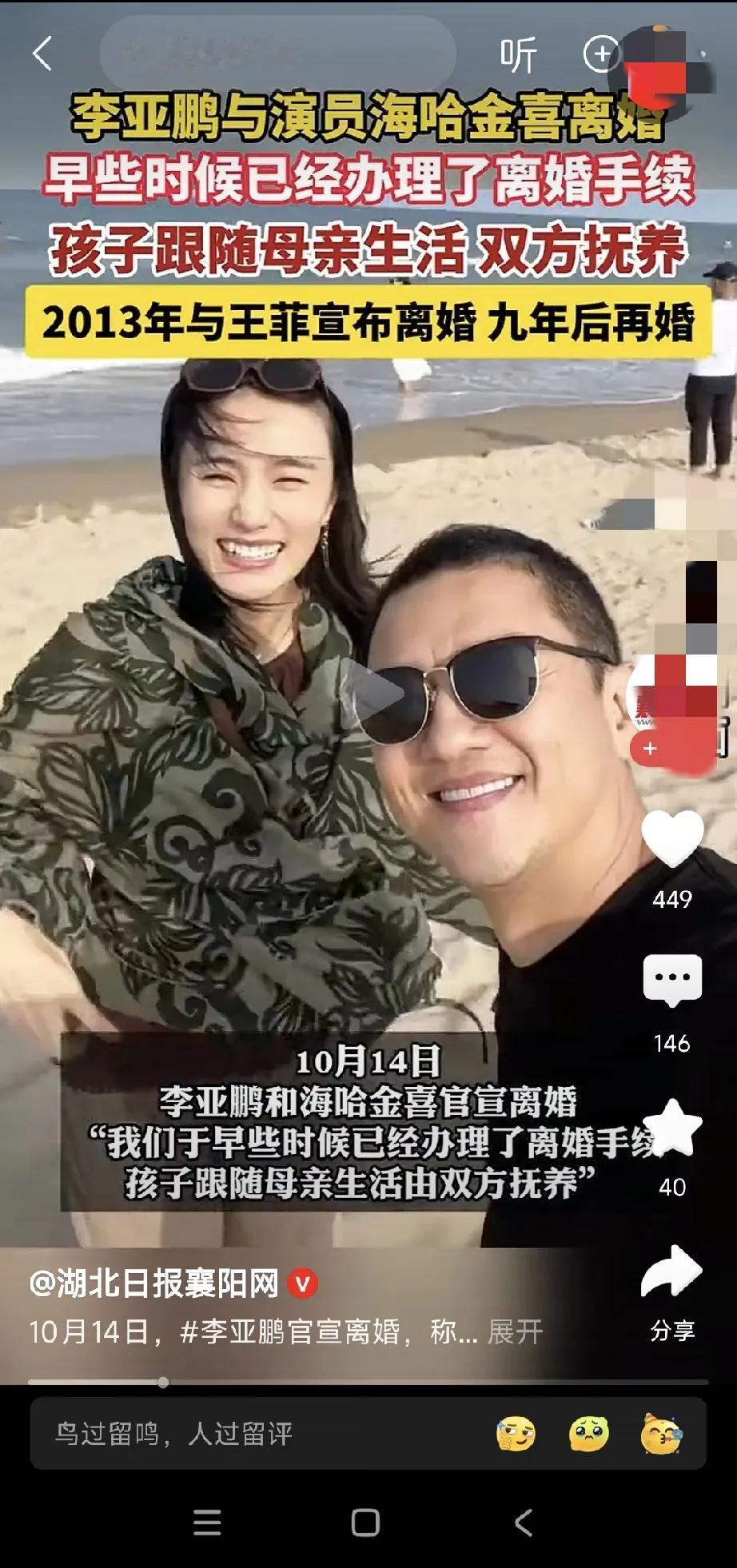 李亚鹏和海哈金喜是真离婚吗? 5月,海哈金喜还发布搬家视频,称为了减少生活开支,搬家去更小的房子一起生活。还强调“一家人整整齐齐,什么困难都不是困难”! 当面对离婚传言,海哈金喜发布视频回应,两人只是因为工作原因长期分居,感情并没有出现问题。 6月1日儿童节,一家三口合体。如果只是为了孩子合体,海哈金喜的笑容是不是也太灿烂了点? 即将要离婚的两人,正常应该肢体远离,眼里无光,笑容僵硬。而这照片里的两人,脸上幸福的笑容压不住,肢体相互靠近对方,两人气色都是绝佳。一点都不像被感情消耗的男女! 李亚鹏和海哈金喜,未来可能还会有交集,我们拭目以待吧~