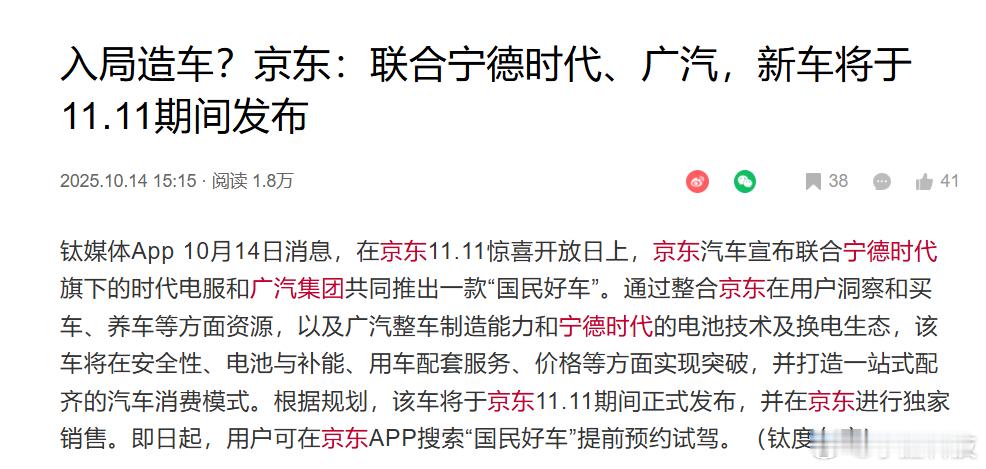 京东造车我的理解是本质还是广汽造车,京东只是扮演一个拓展销售渠道和售后服务的角色