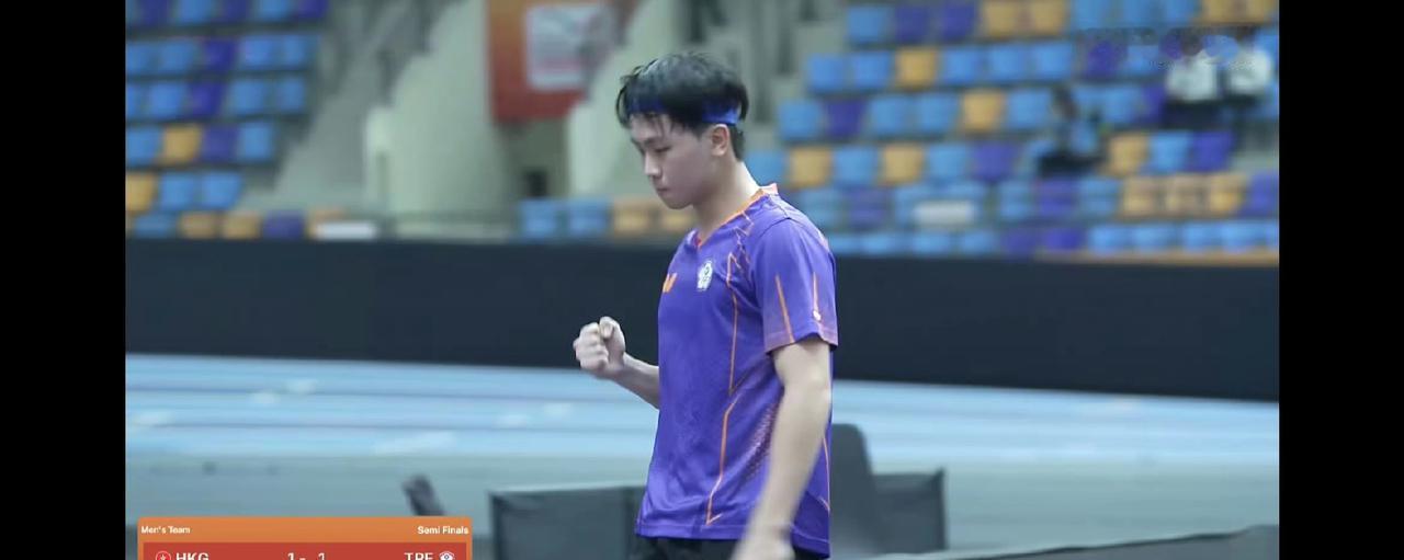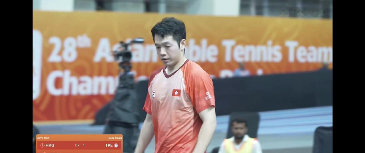 天啊,主力没来,台北省队还这么猛[吃瓜群众], 第三盘何钧杰输了张佑安! 第三盘港队选手何钧杰1-3不敌台北省队选手张佑安, 大比分中国香港男团🇭🇰1-2落后中国台北男团。 四局比分为:11-9,7-11,3-11,11-13。 第四局何钧杰9-4领先被翻盘,中国台北省队这几个小将都是刚过去的中国大满贯U19晋级的四强选手,台北省队的梯队建设还真不错。 这是一场第28届乒乓球印度亚锦赛男团半决赛,目前中国香港男团1-2落后中国台北男团, 第四盘:黄镇廷🆚郭冠宏! 黄镇廷今年34岁,郭冠宏今年17岁,谁能拿下这关键的一分? 评论区一起关注哦[吃瓜群众]。