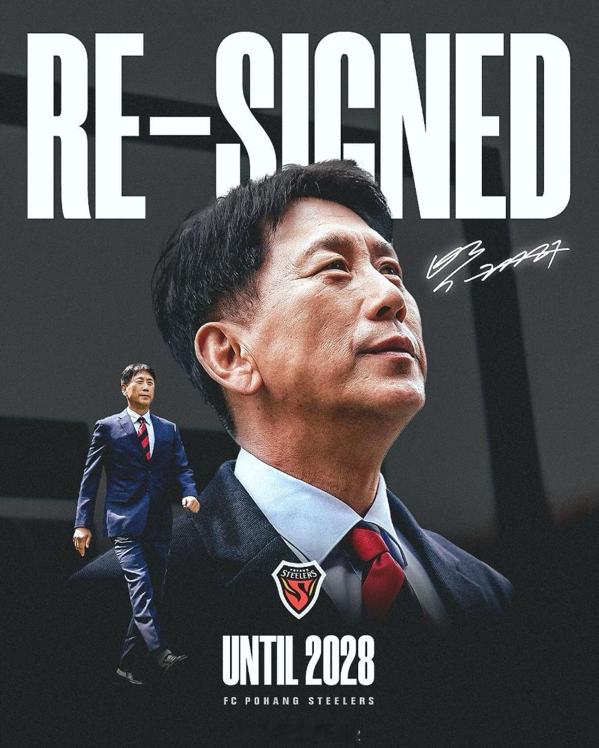 浦项铁人与主帅朴泰夏续约至2028年。K联赛
