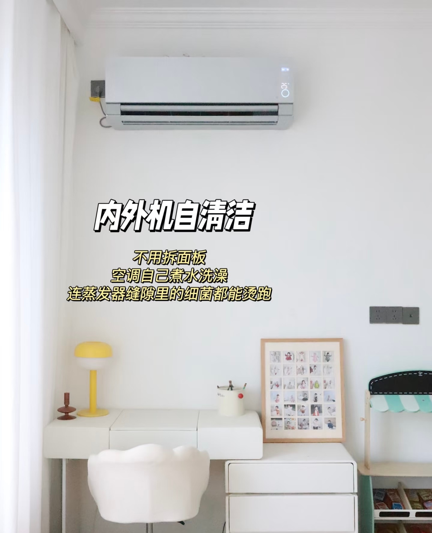 不止能制冷制热还可以洗空气,它凭借 820 m³/h 的大风量快速焕新空气,更以离子洗空气科技为核心,释放千万级负离子,不仅能实现杀菌、除醛、过滤 PM2.5,还能一口气搞定 7 类常见污染物,洁净力拉满,就算是雾霾房也能秒变森林氧吧。