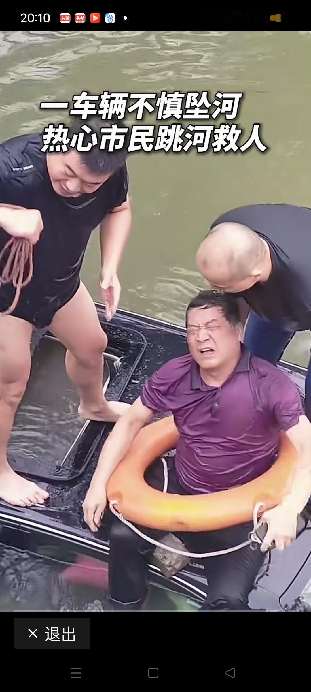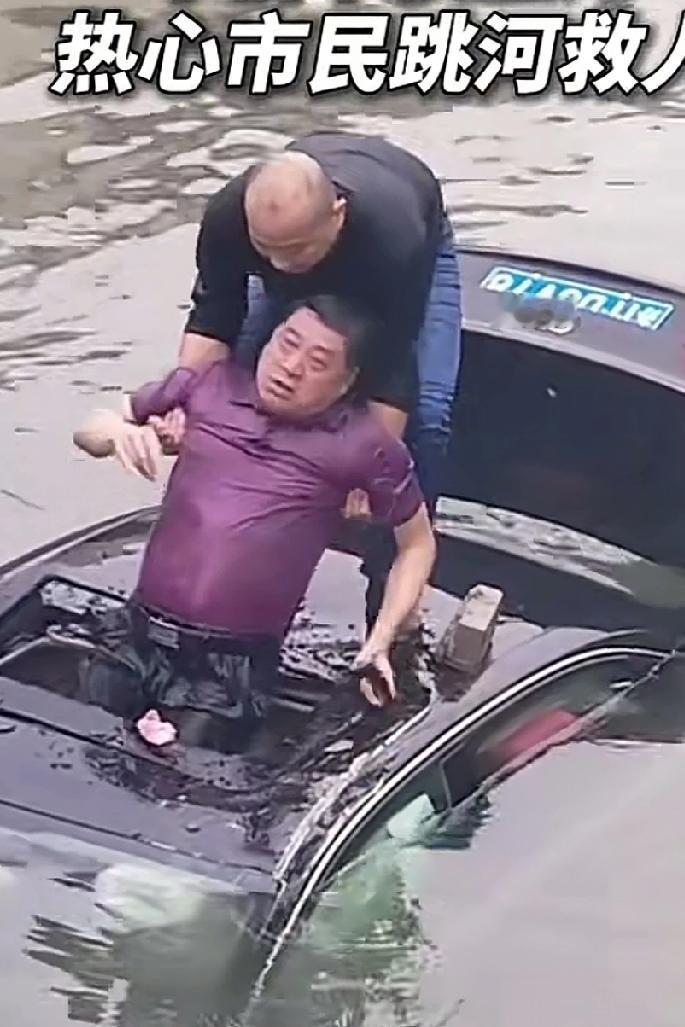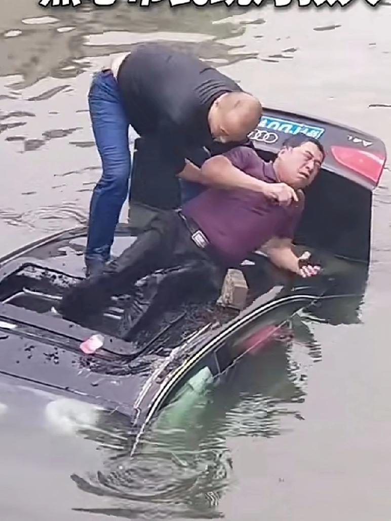 江苏泰州一奥迪车主开车不慎坠河,热心市民跳河救人事迹感动全网! 河水已淹没了车窗,只露出一个车顶,幸亏车带有天窗,否则救人无从下手,两位大哥救人心切,其中光头大哥情急之下用砖头砸开天窗打开后,用尽全力把车主从车里面抱出来,挽救了他的性命! 患难见真情两位大哥是在冒着生危险在救人,被救车主一定重谢两位大哥!