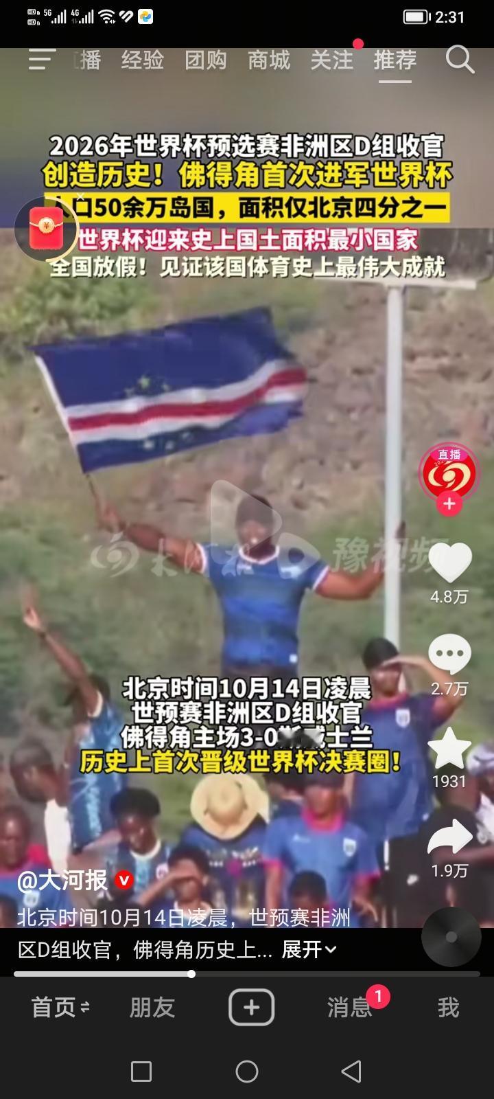刚刷到一个新闻,一个叫佛得角的小国进入了2026年世界杯足球决赛圈,大家是不是没