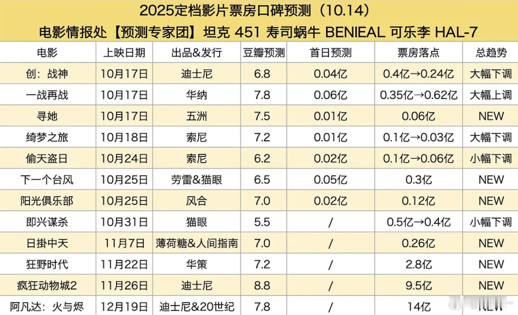 胡说八道还能有工作的,就是这些票房预测机构