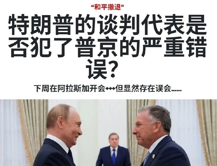5月初美右翼媒体纽约邮报也曾报道,称维特科夫违反了既定的外交惯例,在未带顾问、专家和军事人员的情况下出席谈判。此外,据称他使用的不是自己的翻译,而是一名他根本不熟悉的俄翻译。