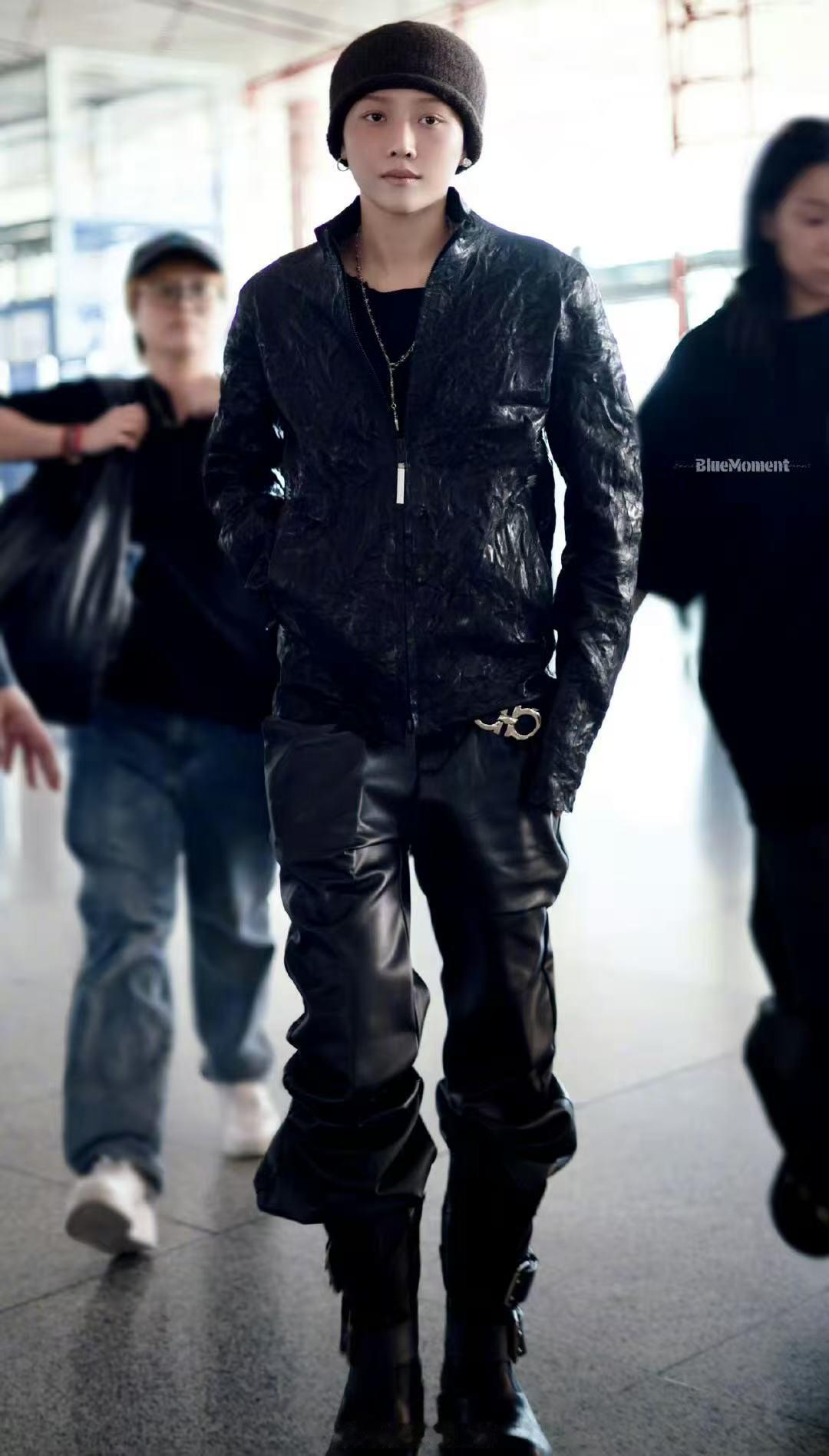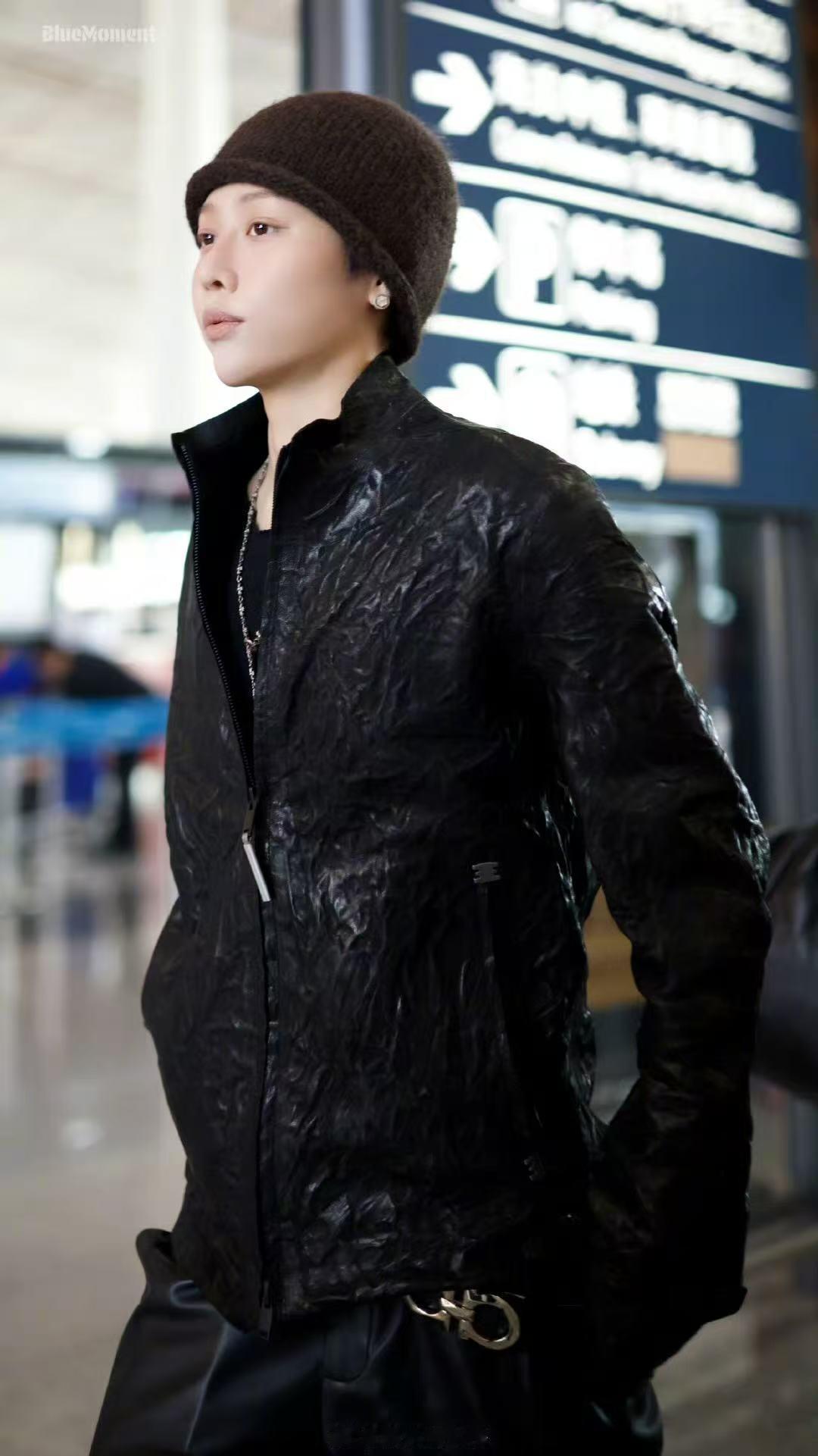 刘雨昕皮衣皮裤look刘雨昕今日机场造型来啦!皮衣皮裤造型又帅又美~太好