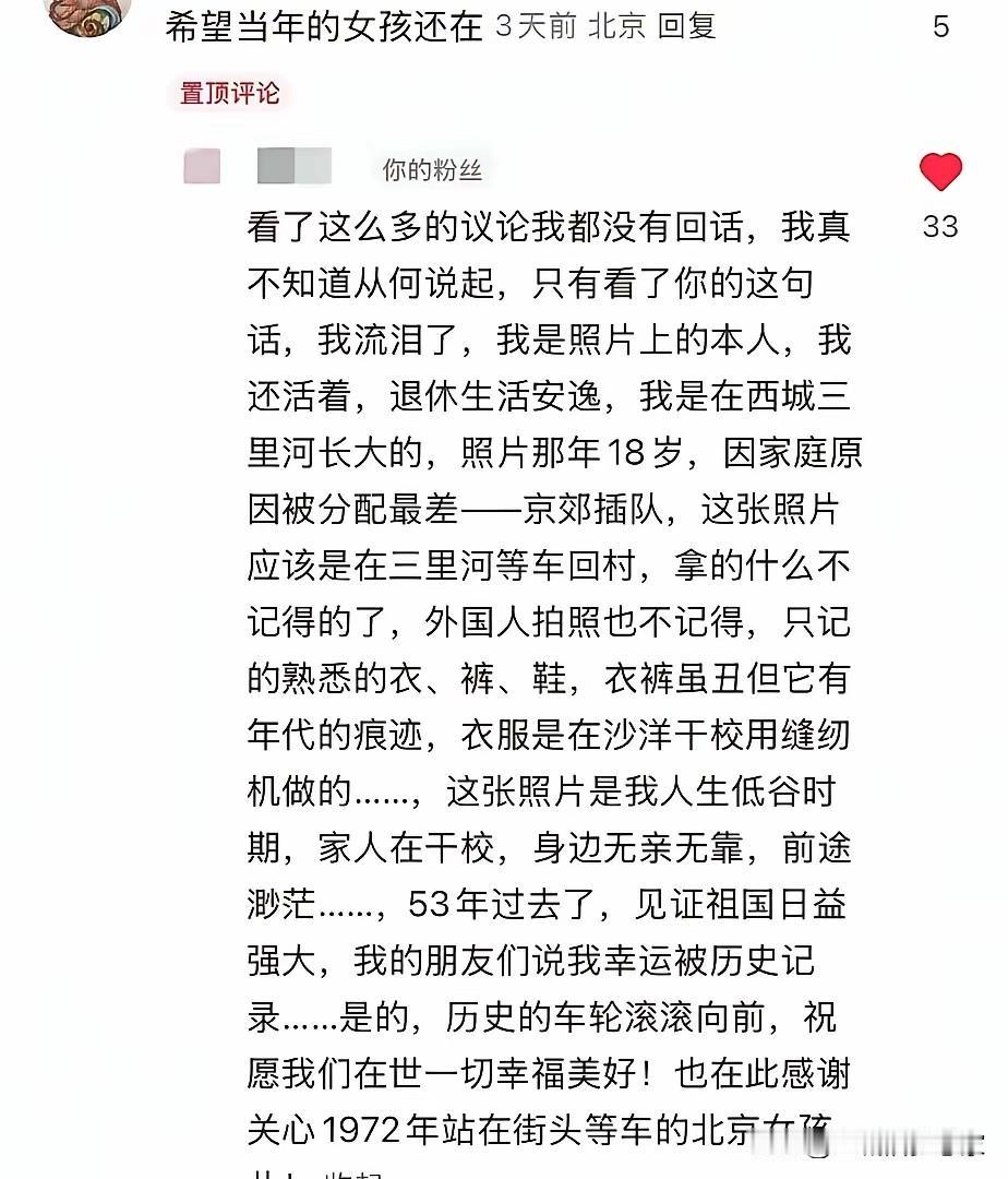 这张老照片,与当事人的讲述一起,为我们打开了一段特殊的历史记忆。知识青年上山下乡,是那个年代不可复制的时代印记——它把城市青年推向广阔的农村,在田野与乡土之间,经历了一场别样的人生淬炼。 有人怀念那个年代的纯粹与磨砺。艰苦环境中锻造出的坚韧意志,对基层生活的深刻体认,成为了一代人独特的精神财富。就像照片中的这位女士,那段看似曲折的插队岁月,如今回望,已是历史不可分割的一页,记录着个人命运与时代洪流的同频共振。 而历史的魅力,正在于它的多元解读。无论我们以怎样的情感回望那段岁月,这些真实的个体经历与时代轨迹都在提醒我们:每一段时光都有其独特的底色,每一代青年都在用各自的方式诠释青春与担当。它们交织在一起,铺就了我们民族前行的道路——值得尊重,也值得被铭记。有哪些让人怦然心动的照片