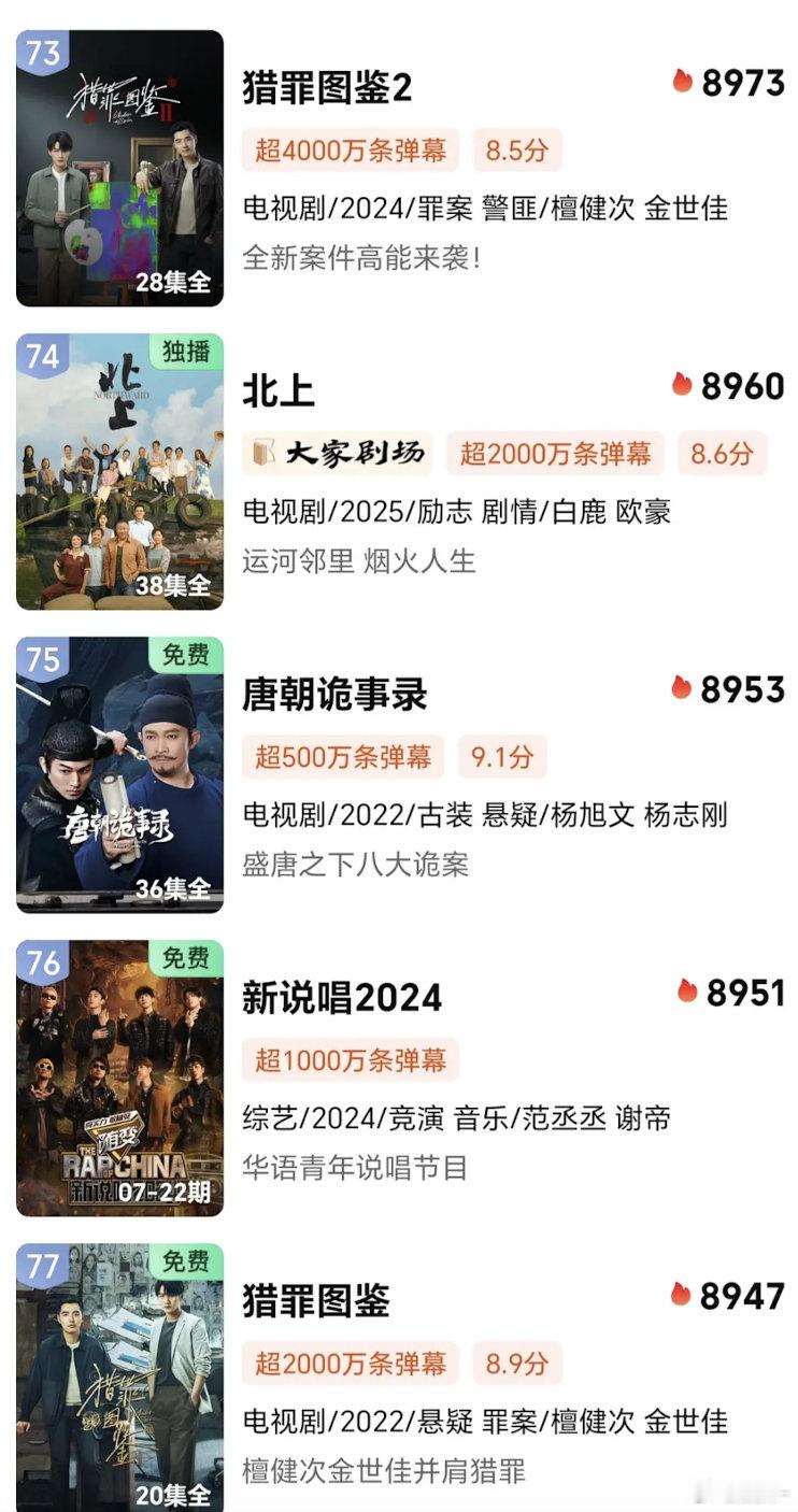 爱奇艺卡在了9000大关的有哪些剧?猎罪还有唐诡不是挺火的么,原来都没过9000