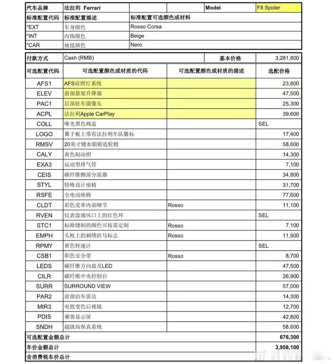 法拉利F8敞篷,22年行驶5千公里,选配67万…..​​​