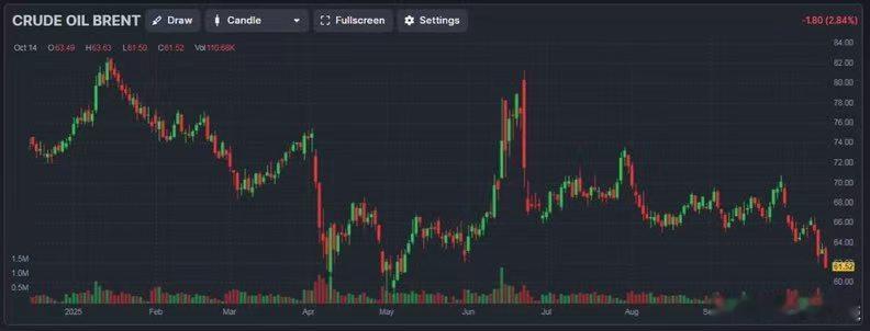 1、布伦特原油价格下跌至61.5美元,跌幅达2.8%;俄罗斯的破产危机正在逼近。