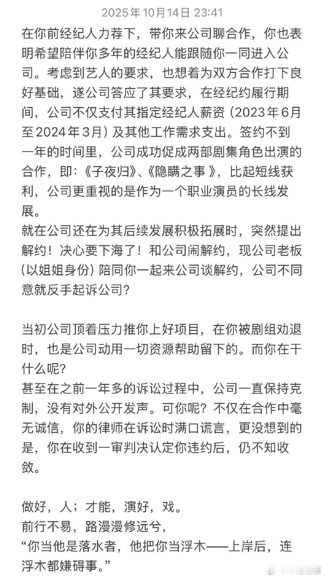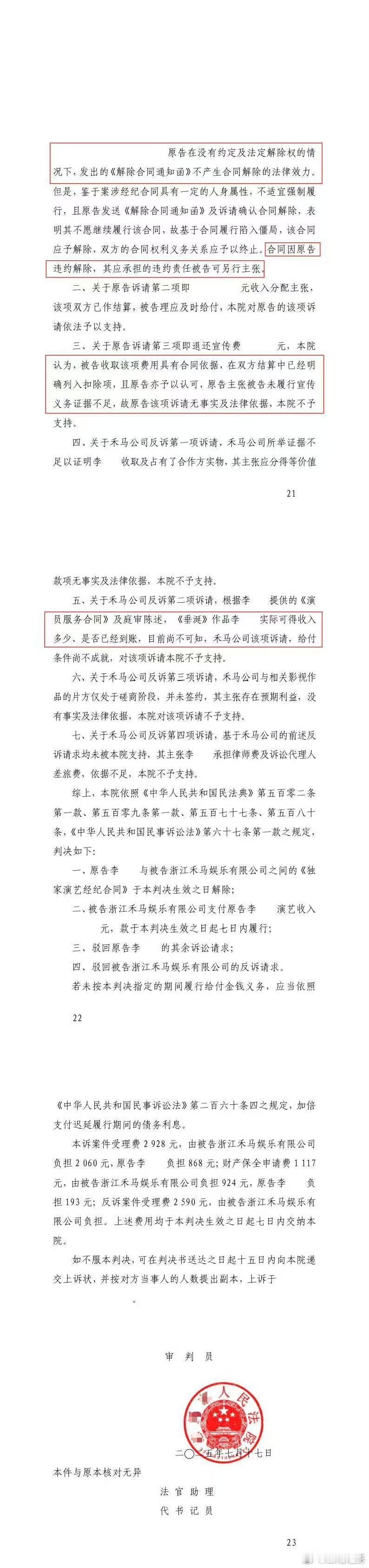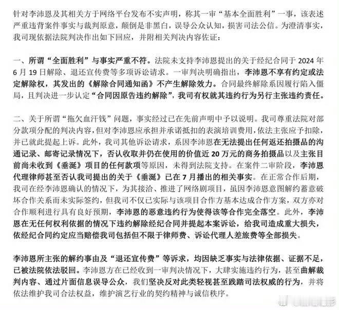 禾马娱乐回应弄简禾马娱乐称所谓全面胜利与事实严重不符 禾马娱乐回应弄简 :针对李沛恩及其相关方于网络平台发布不实声明,称其一审“基本全面胜利”一事,该表述严重违背案件事实与裁判原意,颠倒是非黑白,误导公众认知,损害司法公信。 弄简晒李沛恩解约案一审判决书