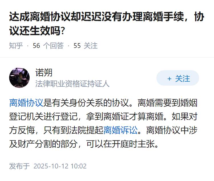 达成离婚协议却迟迟没有办理离婚手续,协议还生效吗?