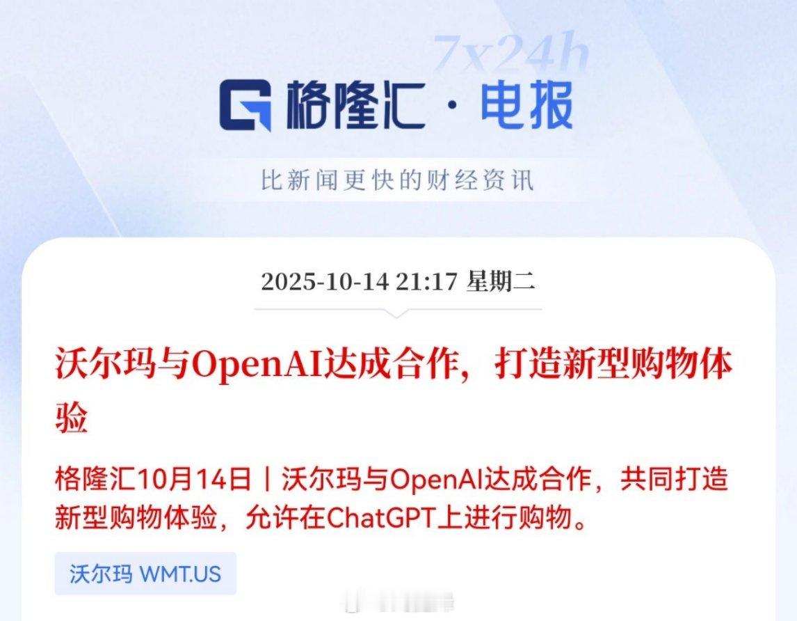 沃尔玛与OpenAI达成合作,打造新型购物体验 a股 OpenAI这是准备全部合