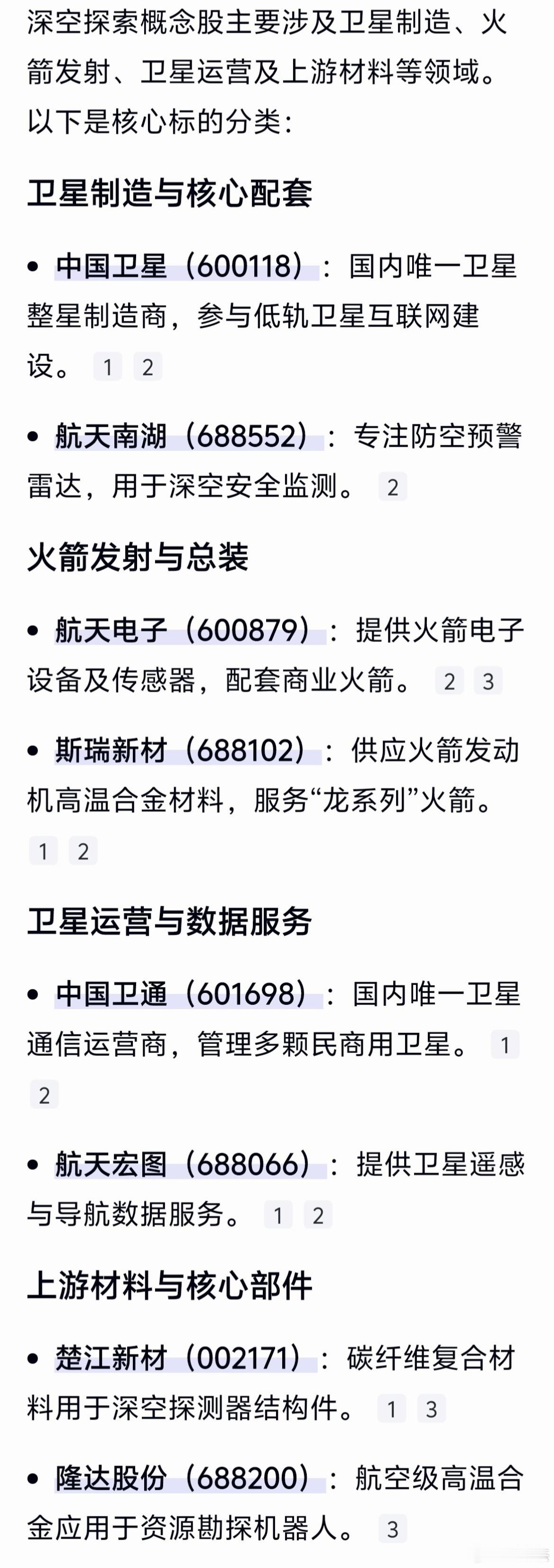 深空探索产业方向:涵盖深空资源开发(如月球矿产开采)、深空互联网(星际通信网络)、深空能源(太空太阳能电站)、深空生物(微重力环境药物研发)、深空运输(低成本火箭与轨道转移技术)、深空智能(自主导航与机器人技术)、深空建造(月球基地模块化建设)、深空旅游(亚轨道与近地轨道观光)、深空安全(小行星防御系统)、深空文化(科普教育与 IP 开发)。。。。码住。