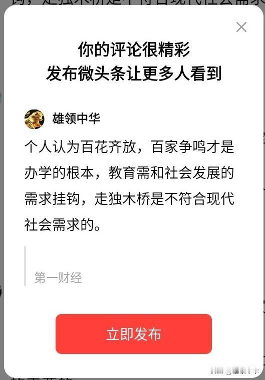 个人认为百花齐放,百家争鸣才是办学的根本,教育需和社会发展的需求挂钩,走独木桥是不符合现代社会需求的。