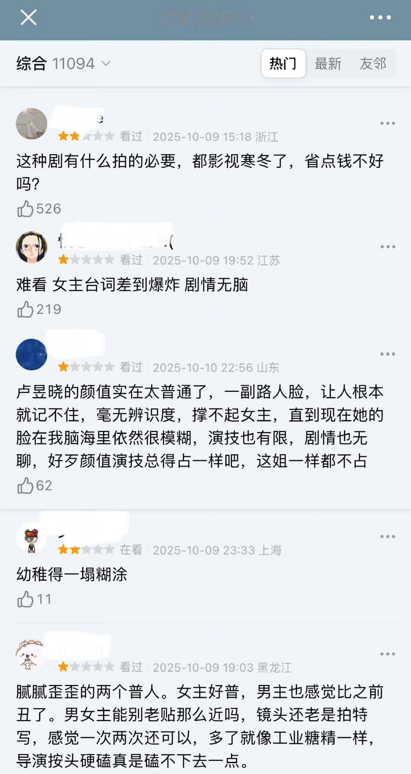 侯明昊卢昱晓的《入青云》的评分很多一星的![允悲][允悲][允悲]入青云热度破9