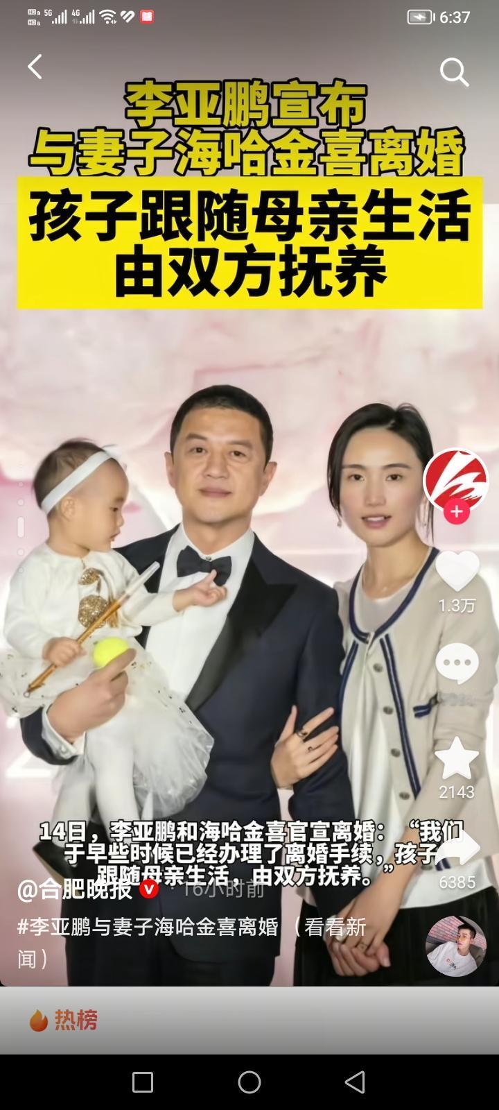 在2025年6月1号的时候,李亚鹏还与海哈金喜一起给女儿过六一儿童节,当时夫妻互