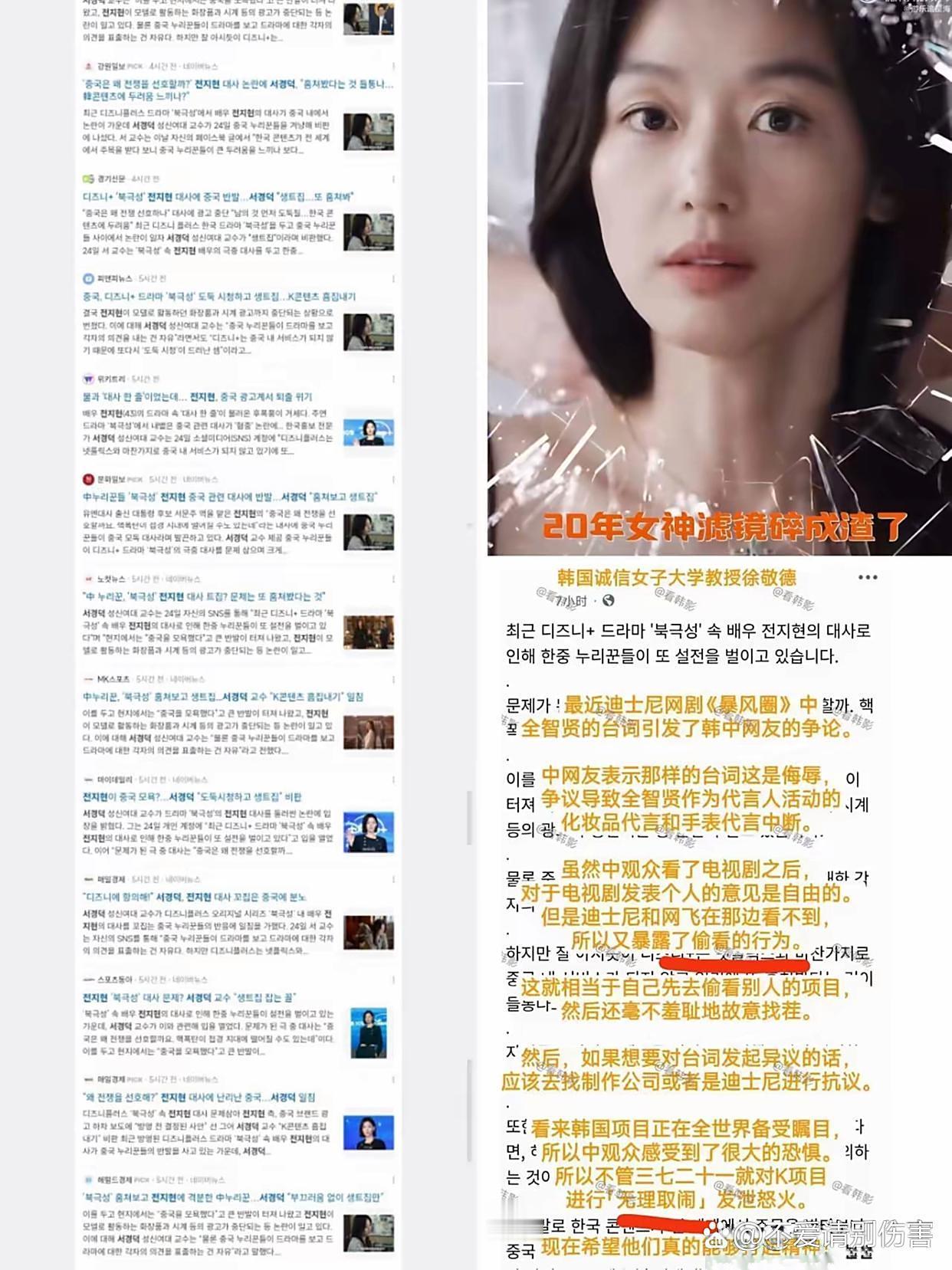 全智贤事件升级 这全智贤的事情依旧是在热头上。 这在韩国的三十多家韩国媒体也是集体为全智贤发声,看得出人家这是抗争到底啊。 这30多家的媒体呢?转发的是由诚信女子大学教授徐敬德给全智贤发的文章。 文章内容表示言论自由,声称这《暴风圈》并没有在中国上映,我们是属于偷看。 对于台词更应该去找出品方抗议, 不得不说,没出事的时候呢,各种片段各种炒作,还拿着国际代言。 如今倒好,营销失败了,就开始讽刺别人偷看,实在是可耻,对此你们怎么看?