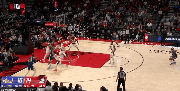 防守做起!杨瀚森上场怒收3板! 在今天NBA季前赛开拓者与勇士的第一节比赛中,替