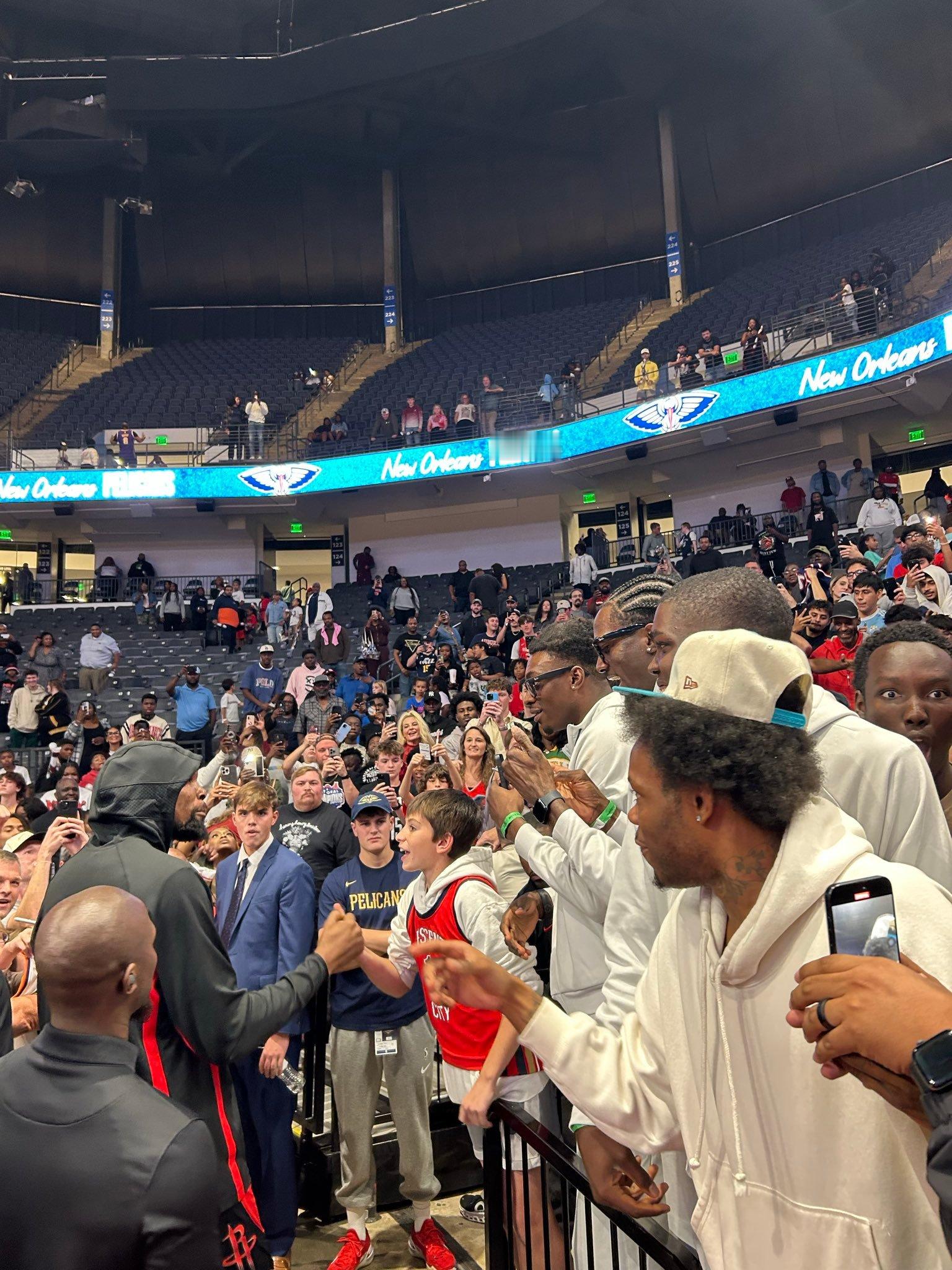 有人甚至把两个小孩举过栏杆,好让他们能追着他跑。