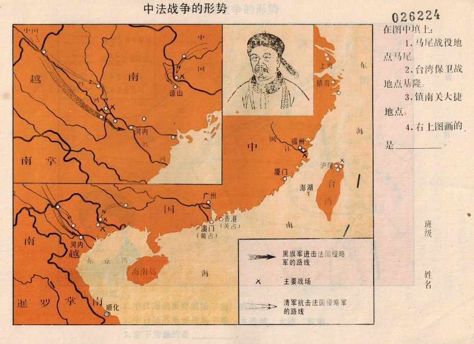 1993年初中历史地图填充图——中法战争的形势图
