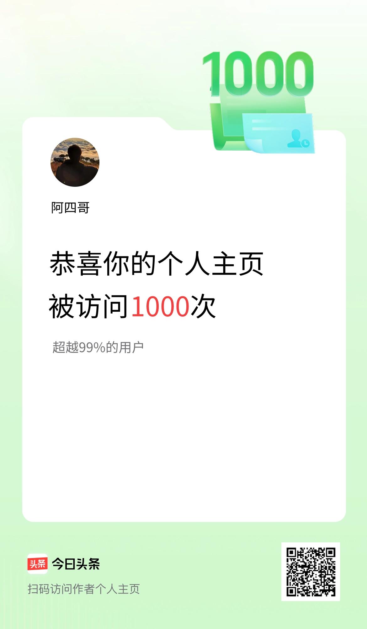 今日头条开通100天,粉丝3333个!截止今天有1000个友友访问过我的主页!再此感谢友友们的支持和鼓励!再接下来的日子里,我将保持高昂的写作热情,继续分享生活的苦辣酸甜,人情冷暖!让我们闲暇生活多一些美丽的心灵感受!