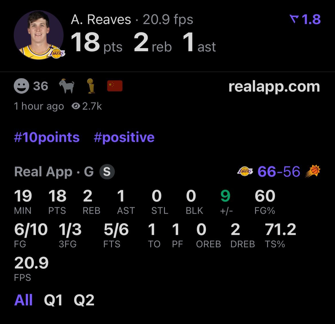 里夫斯连得5分!已经砍下36分7篮板8助攻!湖人vs国王