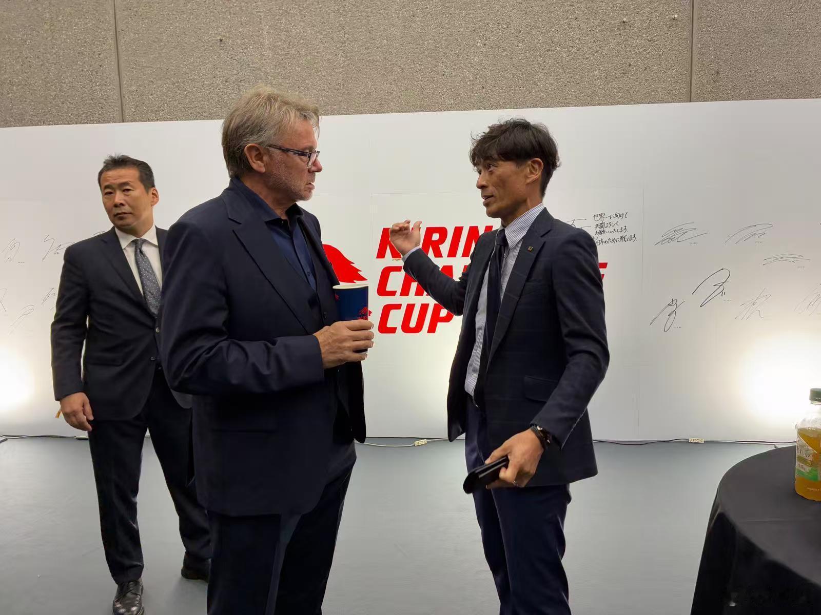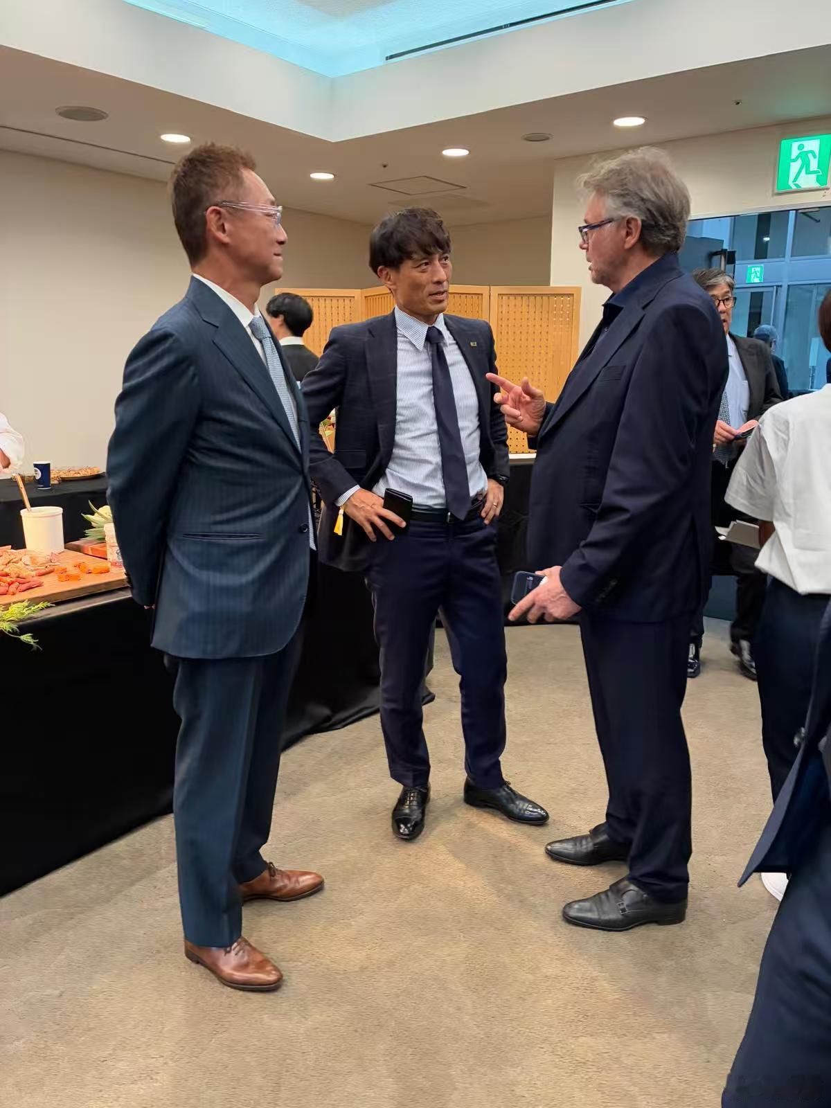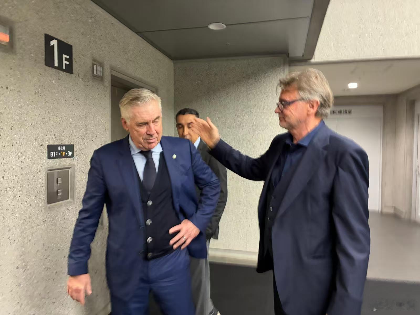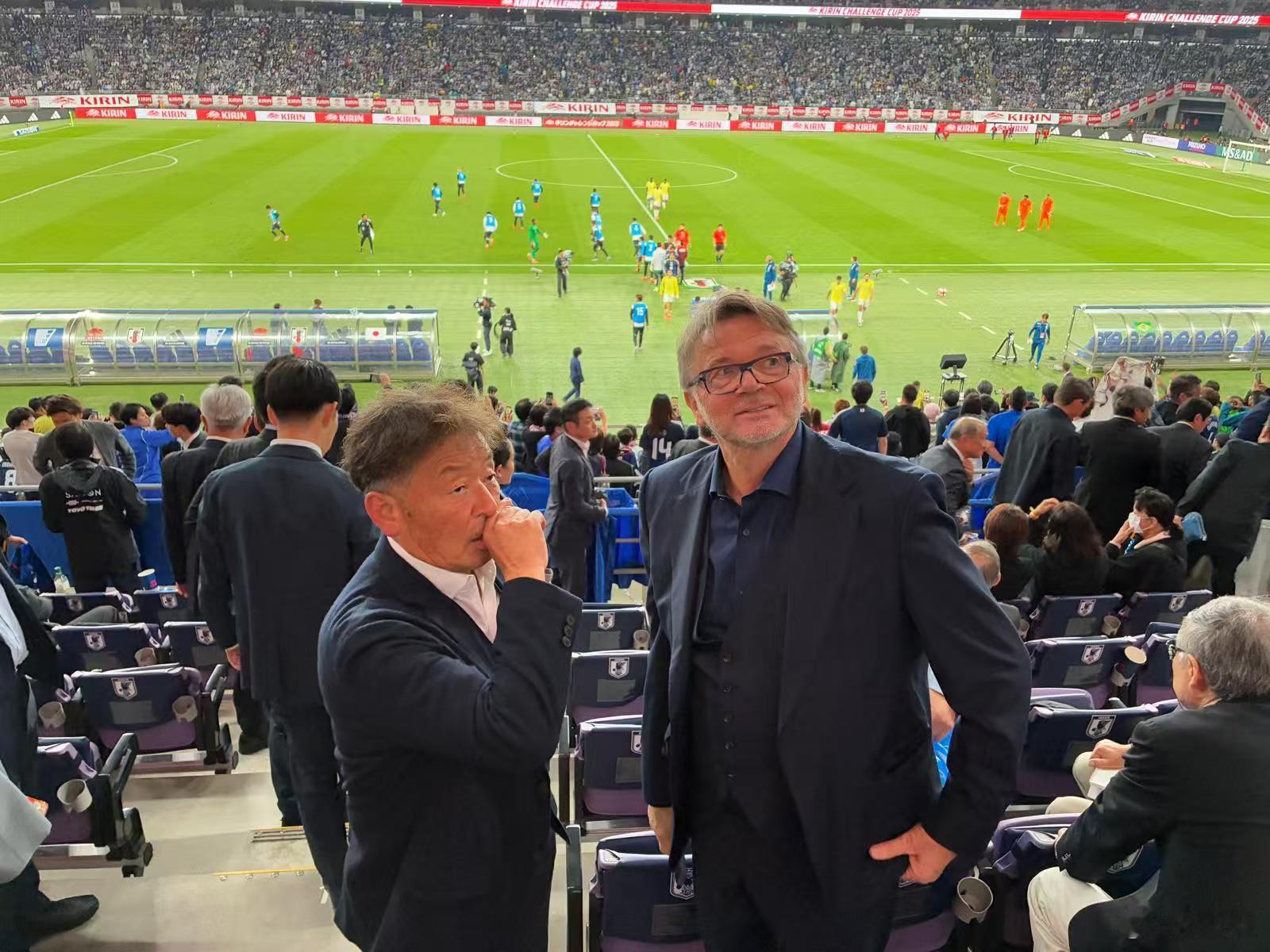 前日本队功勋主教练特鲁西埃在现场见证了日本战胜巴西这一历史性时刻,他还与巴西主帅安切洛蒂、日本足协主席宫本恒靖见面交流[good]日本3比2巴西