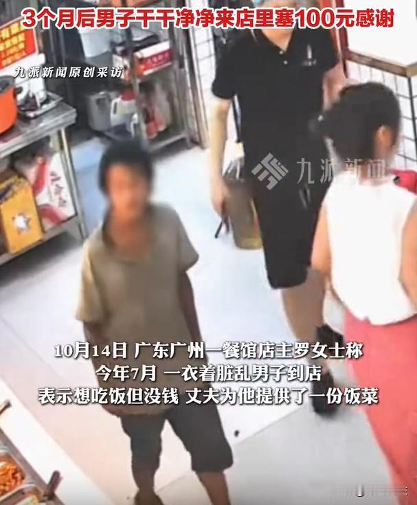 广州,一位穿着脏兮兮、头发散乱的青年,走进一家饭店,询问餐厅老板是否可以给他一碗饭吃。老板也是热心人,随即就给他安排了一顿饭。后来,小伙子又多次来索要餐食,老板也是照样给其安排。小伙子的姐姐得知之后,给老板转账380元,老板换成现金又交给了小伙子,鼓励他去找一份工作。至此之后,这位“脏兮兮”的小伙子再也没出现过。 九派新闻10月14日报道了这则新闻。直到有一天,一位穿着整齐、打理干净的青年,骑着自行车来到饭店内,老板一眼就认出来,这就是那位曾经的少年啊。青年递给老板一百元,转身就离去。 这一天,一家餐馆里正常营业,老板娘罗女士正在前厅招呼食客,老板则坐在前台管账。这个时候,走进来一个衣服破烂、浑身脏兮兮、像是个流浪汉模样的青年。 他显得有些腼腆,但是由于腹中饥肠辘辘,他缓缓的走到老板面前,无奈的问了一声:“老板你好,可以送我一顿饭吃吗?” 听到此话,老板赶紧抬头看了一下青年,立刻就招呼罗女士帮忙安排一顿饭。少年吃完免费的午餐,对老板表示了感谢,就离开了饭店。 接下来的几天,青年还是会偶尔过来“蹭饭”,老板非常善良,每次都是不厌其烦的给其安排。这些天,青年一共吃了老板三顿饭,每次吃完也都会表示感激。 有一天,店里来了一位女士,她自称是前几天来蹭饭青年的姐姐,于是给老板转账了380元。老板默默的去把这380元给换成了现金。 又是一个寻常的午时,青年又过来了,这次他手里拎着一个塑料袋,里面放满了塑料空瓶。老板这才明白,这位少年估计是以捡垃圾为生。于是,还没等青年开口,老板又给他免费安排了一顿午餐。 这次,老板坐在了青年旁边,耐心的对他说:“小伙子,你还年轻,好好收拾一下自己,趁着大好年华,去找一份工作吧。”接着,从兜里取出了那380元,交到了青年手里。青年接过钱,低着头,若有所思。 后来的这些天,老板再也没有看到青年过来,随着时间的推移,老板夫妻俩几乎要把他给忘记了。直到某一天,店内来了一个人。 这一天,一位青年穿戴干净整齐,头发也打理的非常帅气,他骑着一辆自行车来到饭店门口。停好车子之后,他走进饭店。 来到前台之后,老板愣了一下,后来一眼就认出来,这位就是之前的老相识啊。老板还不忘询问:“这段时间去哪里了啊,找到工作了吗?” 青年没有回答,只是从口袋里拿出一百元,恭恭敬敬的递给了老板,然后就骑车离去。老板明白了这孩子的意思,赶紧追出去把钱还给他,但是跑到店门口已经不见了他的踪迹。 善良的青年是过来回报当时的“一饭之恩”,而当时热心老板的鼓励,正是那束照亮他心灵的光芒,指引了他前行的道路。 1.男子多次到饭店里来求助,请求老板免费给他提供午餐,这个要求是否合理呢? 根据《消费者权益保护法》规定,免费提供餐饮属于自愿行为,店家没有法律义务必须要来满足此类请求。如果当时店家拒绝,不会构成违法。 这位青年确实面临经济困难,身无分文,因此才提出了这样的请求,而老板也很善良,他同意了男子的请求,并且后面还多次赠与免费的午餐,此举得到了大家的认可和点赞。 2.虽然是免费的午餐,但是如果因为自己的善意,对方吃坏肚子,商家是否需要承担赔偿责任呢? 根据《食品安全法》第一百四十八条明确规定,即便食品免费,如果不符合安全标准造成他人损害,消费者仍然可以向经营者索赔。赔偿范围包括医疗费、误工费等实际损失。 由此可见,哪怕是提供的免费的餐食,老板还是需要确保食品安全。如果青年吃了免费的食品导致身体出现损害,店家还是需要承担赔偿责任的。 而这位老板却没有顾及这么多,青年求助,他就伸出援手,即使青年姐姐过来转账,他也将钱款退还给了青年,同时还加以鼓励,给青年加油打气。 世上有很多正道的光,也有很多温暖与善意存在。我们要为这样的正能量点赞,大家觉得呢。