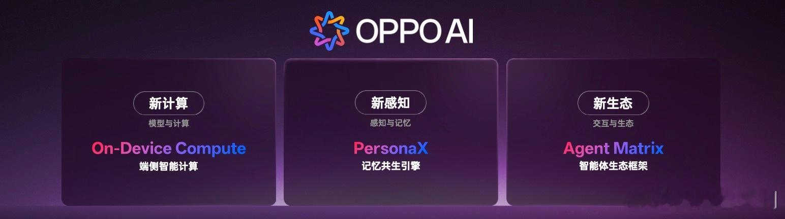 此外,OPPO AI 发布新战略:新计算,新感知,新生态。基于On - Device Compute端侧智能计算、PersonaX记忆共生引擎、Agent Matrix智能体生态框架的三大技术基座,OPPO AI将带来与你共生的智慧系统,引领个人化AIOS!
