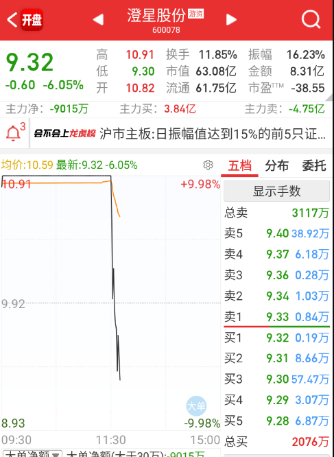 $澄星股份sh600078$高度继续自杀,低位板还行,三板以上都是高危区。。