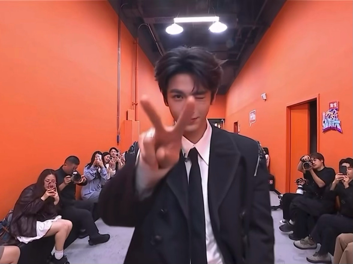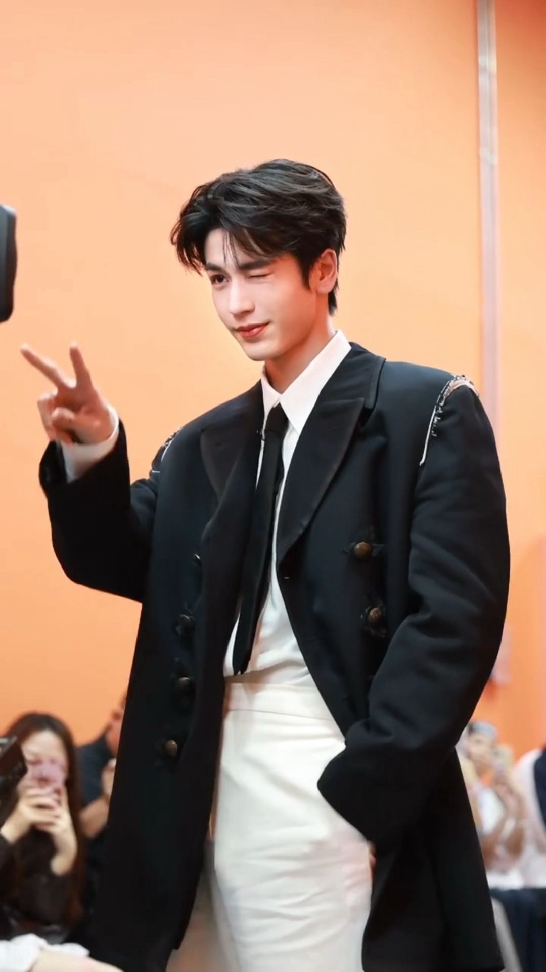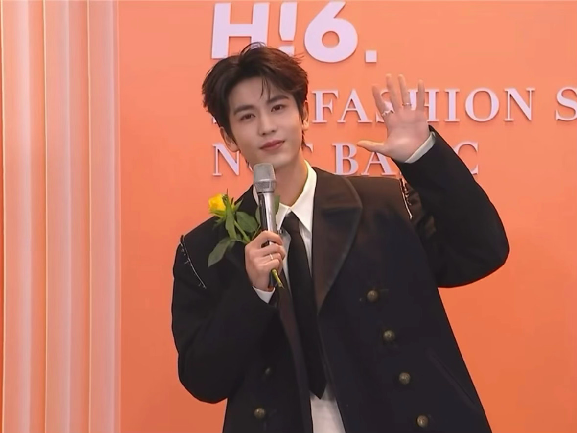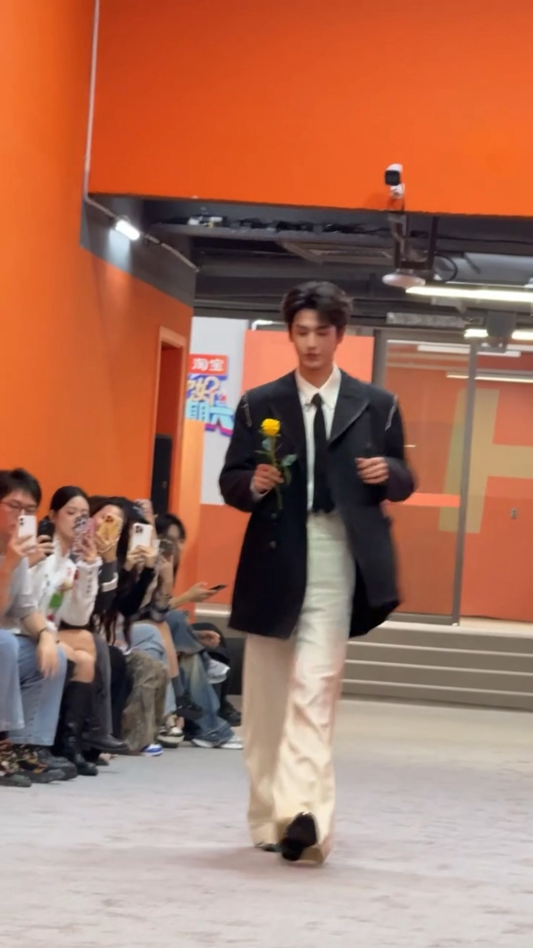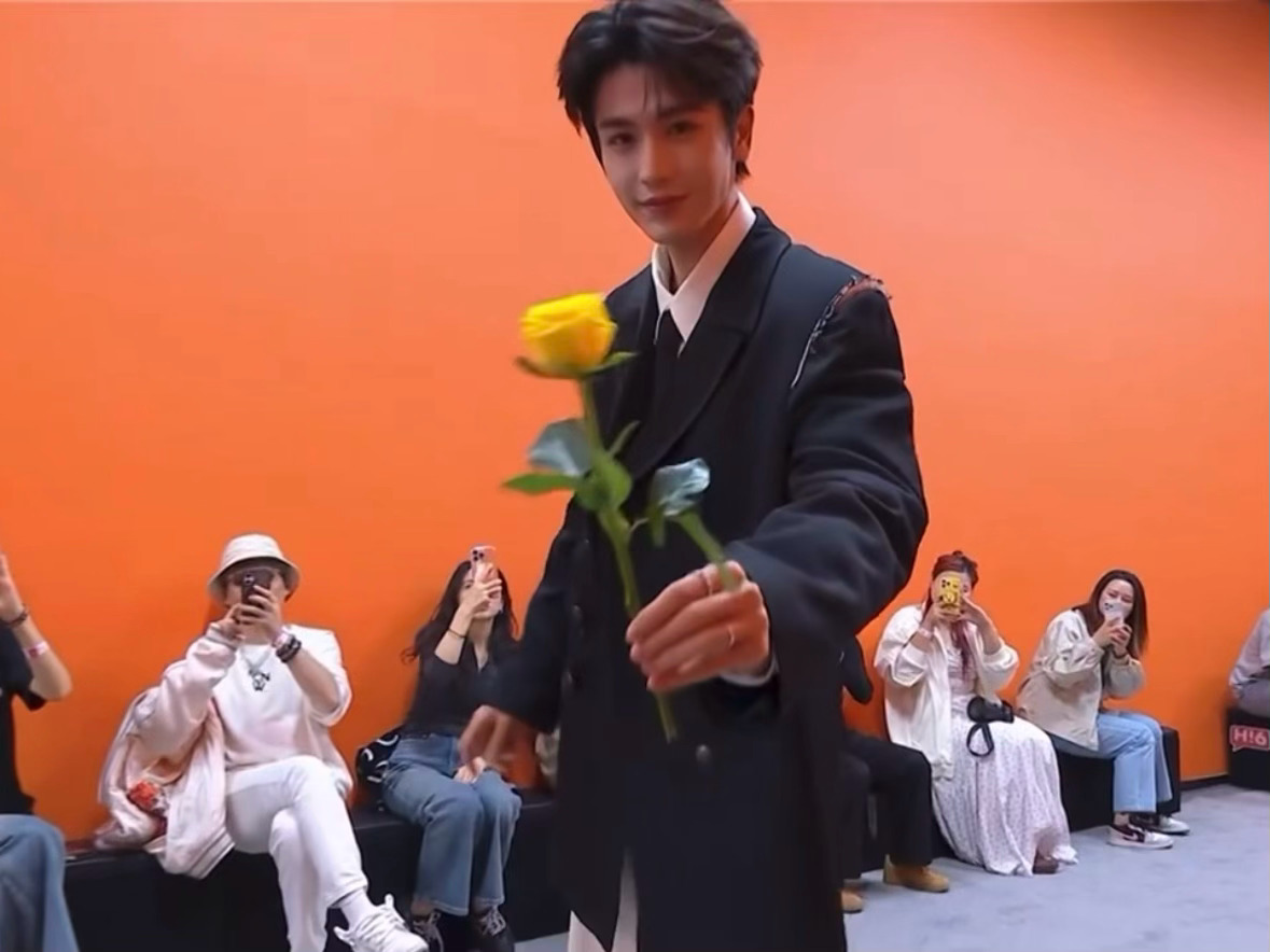张凌赫手拿黄玫瑰走秀 张凌赫剪刀手wink