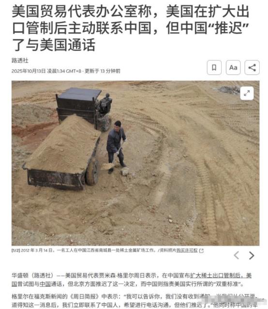 10月13日,根据路透社报道,在我们反制之后,美国贸易代表贾米森·格里尔表示:在中国宣布扩大稀土出口管制后,美国曾主动联系中方希望进行电话沟通,但中方拒绝了。格里尔强调,美国事前并未收到任何通知,是从公开渠道得知消息后才紧急联系中方。 这话里话外,都透着美国这次是真没准备好,完全被打了个措手不及。 更有意思的是格里尔的表态,他居然把中国扩大稀土管制说成是“权力攫取”,还说中国是想靠稀土供应链给美国施压。 这话听着就挺离谱,稍微懂点行的都知道,稀土这东西从来不是中国随便拿来“施压”的工具,而是美国自己把供应链的命门交到了别人手上。 美国这些年一直喊着要“供应链自主”,要摆脱对中国的依赖,可喊了半天,稀土领域还是没半点起色。 有数据摆在那儿,全球稀土加工分离产能里,中国占了快90%,美国自己连完整的稀土产业链都凑不出来。 美国军工企业造F-35战机,每架都得用近500公斤稀土材料;造导弹制导系统、雷达设备,更是离了稀土不行。 之前美国也想过在本土搞稀土工厂,结果要么因为环保问题卡壳,要么因为成本太高撑不下去,折腾了好几年,还是得靠从中国进口。 这次中国扩大稀土出口管制,不是突然发难,而是早有信号。 之前中国就多次强调,要规范稀土行业发展,保障战略资源安全,美国要是真关注这领域,不可能没察觉。 可他们偏偏不当回事,总觉得中国不会动真格,结果等到管制措施落地,才急急忙忙想找中方沟通,这时候被拒绝,其实一点都不意外。 格里尔说没收到通知,这话听着就没说服力。 中国出台这类政策,都会按规矩走相关程序,提前在官方渠道公示,美国要是真重视,早就该盯着这些信息,而不是等到政策落地了才从新闻里知道。 说白了,还是美国一直抱着侥幸心理,觉得能靠“口头施压”让中国妥协,没真正把中国的战略布局当回事。 这次中方拒绝通话,也不是故意不给面子,而是美国得先想明白,沟通不是单方面提要求,而是要拿出诚意。 美国之前在贸易问题上,一会儿加关税,一会儿搞技术封锁,对中国企业处处打压,现在自己在稀土上遇到麻烦了,就想靠着一个电话让中国松口,哪有这么好的事? 再说了,中国扩大稀土出口管制,本质上是为了保护本国的战略资源,推动稀土产业高质量发展,不是针对谁。 这些年中国一直在推进稀土产业升级,从单纯卖原材料,转向搞深加工、高附加值产品,同时也在加强稀土资源的保护,避免过度开采。 美国要是真担心供应链安全,该做的是赶紧完善自己的产业链,而不是反过来指责中国“施压”。 看看美国国内的反应,这次稀土管制消息一出,美国军工股直接飘绿,洛克希德·马丁、雷神技术这些巨头的股价都跌了不少。 有分析师就说,要是美国不能尽快找到替代供应链,接下来军工生产可能会受影响,甚至会拖慢F-35的交付进度。 之前美国也找过澳大利亚、加拿大合作搞稀土项目,结果澳大利亚的稀土矿里杂质太多,加工成本比中国高好几倍;加拿大的项目更是还在勘探阶段,猴年马月才能投产都说不准。 反观中国,不光有完整的稀土加工产业链,还在不断提升技术水平,现在连稀土永磁材料、发光材料这些高端产品,中国的产能和技术都走在全球前面。 美国想在短时间内找到能替代中国的稀土供应方,几乎是不可能的事。 格里尔嘴里的“权力攫取”,其实是美国自己的战略失误。 他们长期依赖中国的稀土供应链,又不愿意在本土投入资源搞产业建设,现在遇到问题了,不想着反思自己,反而倒打一耙,这种态度根本没法沟通。 中方拒绝这次通话请求,也是想让美国好好冷静一下,想清楚沟通的前提是什么。 要是美国还是抱着“居高临下提要求”的心态,就算接通了电话,也解决不了任何问题。 而且这次事件也让其他国家看清了,供应链安全不是靠喊口号,而是要实实在在地构建多元化、稳定的合作体系。 这些年中国一直在和其他国家开展稀土领域的合作,比如和蒙古国、缅甸合作开发稀土资源,同时也在帮助一些国家建设稀土加工设施,推动全球稀土产业的均衡发展。 而美国呢,一直想搞“小院高墙”,把稀土供应链绑在自己的阵营里,结果反而让自己陷入了被动。 现在美国面临的不只是稀土供应的问题,还有整个制造业产业链的困境。 从芯片到新能源电池,美国都在试图摆脱对中国的依赖,可现实是,很多关键环节的技术和产能都在中国手上。 这次稀土管制只是一个缩影,要是美国不改变自己的贸易政策和战略思维,以后还会遇到更多类似的问题。 格里尔说中方“推迟”了通话,其实潜台词就是美国现在很着急,想赶紧解决问题。 可着急也没用,沟通得建立在平等和尊重的基础上。 美国要是真有诚意,就该先撤销对中国企业的不合理制裁,停止在贸易领域的打压行为,用实际行动展现合作的意愿,而不是一边打压一边又想求中国帮忙。