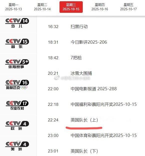 今晚cctv6播放节目《美国队长》
