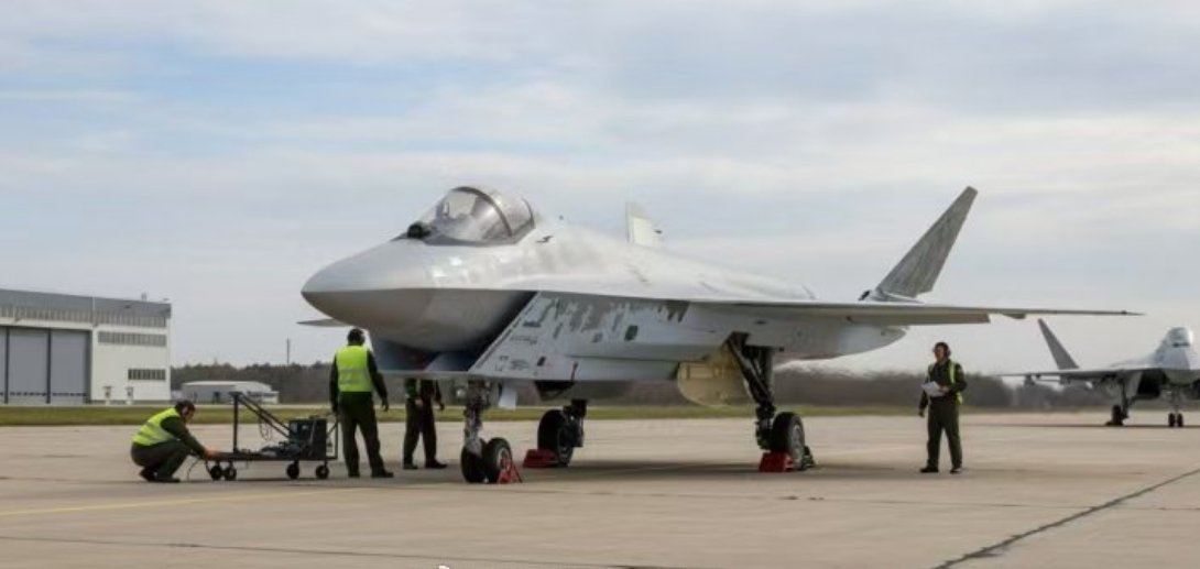 【俄第五代战机苏﹣75现身机场】网络上首次出现了俄制第五代战斗机苏﹣75在机场的