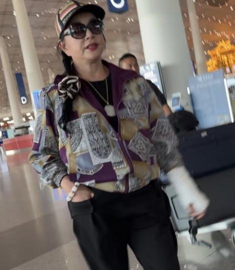 74岁的刘晓庆现身,不受左手受伤影响,走路时身子左摆右晃,大步流星,比年轻人走路