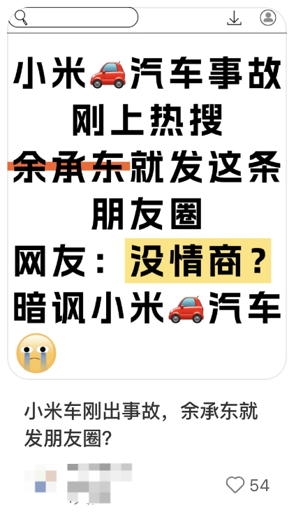 有网友提出,余承东发文时间恰好在小米SU7成都自燃事故发生后,这起事件迅速引发了外界对汽车门把手设计与逃生安全的热议。余承东小米SU7