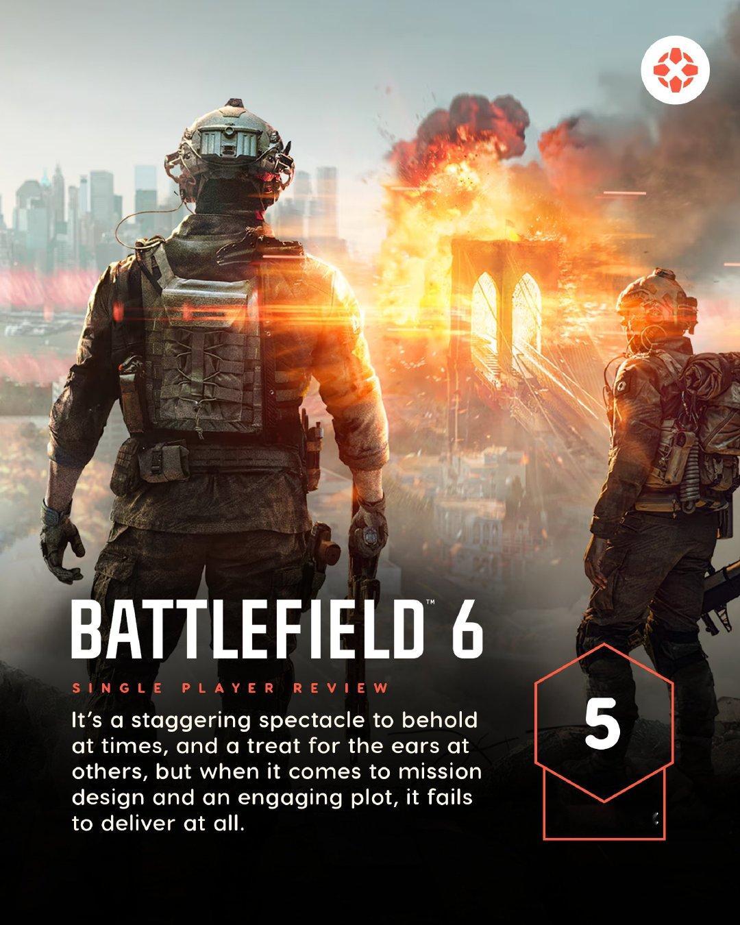 《战地6》媒体赞誉图公开,IGN给本作的多人模式打了8/10分评价,给单人战役模式打了5/10分评价。IGN给战地6打8分战地风云6 ​​​