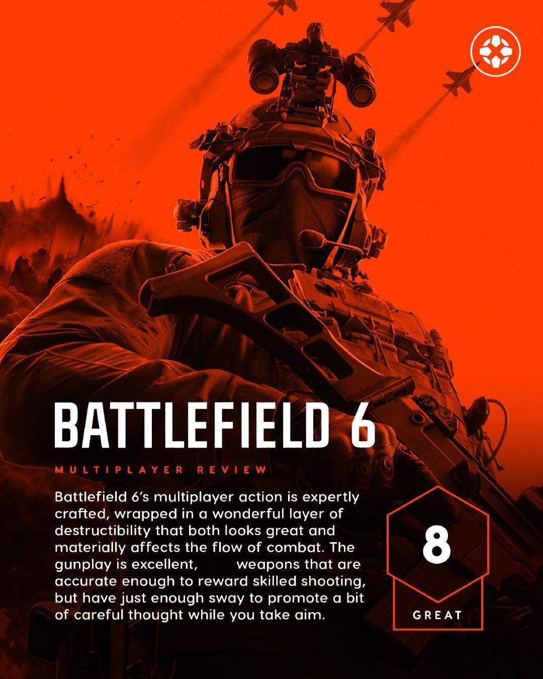 《战地6》媒体赞誉图公开,IGN给本作的多人模式打了8/10分评价,给单人战役模