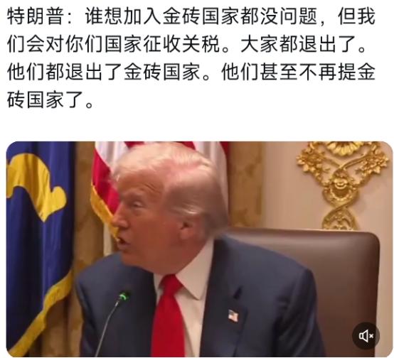特朗普这是又开始拿金砖国家说事儿了,北京时间10月15日他这番话听得人一愣一愣的:“谁想加入金砖国家都没问题,但我们会对你们国家征收关税。” 这话听着挺唬人,又是关税威胁又是说人家“都退出了”,可事实真像他说的那样吗?压根不是这么回事,里头的水分大了去了。 先说说这个“大家都退出了”的说法有多离谱。 现在金砖国家不仅没人退出,反倒越来越壮大了。根据巴西政府官网的信息,现在金砖已经有11个正式成员国了。 除了最早的中国、巴西、俄罗斯、印度、南非,后来又加了沙特、埃及、阿联酋、埃塞俄比亚、伊朗和印度尼西亚,今年7月里约热内卢的金砖峰会上还刚欢迎印尼正式加入,另外还有白俄罗斯、古巴这些十个伙伴国,怎么看都是在扩员,哪儿来的“都退出了”? 更有意思的是,特朗普之前还把西班牙当成金砖国家说事儿,结果西班牙政府发言人直接澄清“西班牙根本不是金砖成员”,连成员都没搞清楚,说“都退出了”简直是无稽之谈。 再说说他放的“加关税”狠话,这倒不是空穴来风,美国确实已经这么干过了,只不过效果跟他想的恐怕不太一样。 今年8月6号起,美国就对金砖国家之一的巴西加征了高达50%的惩罚性关税,虽说豁免了694种产品,但大多是航空零部件和能源衍生品,跟老百姓生活密切相关的农产品、化工品基本都中枪了。 巴西发展部算了笔账,大概35.9%的对美出口直接挨了这50%的关税,还有19.5%的产品要面对25%到50%的全球关税,损失大了去了。 就说巴西的咖啡和牛肉吧,2024年巴西对美咖啡出口近20亿美元,占美国市场的34%,牛肉出口53.2万吨,创收16亿美元,加税后牛肉一项就可能损失10亿美元。 巴西北里奥格朗德州更惨,96%的输美产品被加税,当地超过70%销往美国的金枪鱼根本没法出口,渔业船队都停工了。 连没被直接加税的橙汁产业都受了牵连,副产品被征税不说,国际价格还跌了20%,总共得损失十几亿雷亚尔。可即便被这么折腾,巴西退金砖了吗? 压根没有,卢拉总统反而在加税后跟多个金砖国家领导人通话,强调要一起反对单边霸凌,还计划2026年初访问印度拓展市场,明显是更靠向金砖了。 至于特朗普说的他们甚至不再提金砖国家了,这话说出来估计参加过9月厦门金砖论坛的人都得笑。那次论坛主题是释放大金砖合作潜力 实现包容可持续工业化,来了34个国家的政府部门和产业界代表,不光金砖成员国,哈萨克斯坦、古巴这些伙伴国也都来了。 会上还签了不少实打实地项目,比如中俄数字经济研究中心的两个合作项目,一个是俄罗斯创新实践基金会的中国创新中心,一个是滤膜新材料产业化项目,连俄罗斯工业和贸易部副部长都特地去揭牌,怎么看都是合作搞得热火朝天。 金砖合作早就不是停留在嘴上了,厦门的金砖创新基地这五年搞出了不少名堂,现在已经是金砖合作机制下仅次于新开发银行的第二大实体。 今年论坛还发布了12项成果,比如成立了工业能力中国中心,搞了数贸通平台,还有57个国家的100多名学员参加了人工智能培训,连《金砖国家人工智能展望报告》都发布了,这哪是“不再提了”?分明是越干越实在。 7月的金砖峰会上,各国还敲定了要加强政治安全、经贸财金、人文交流“三轮驱动”,印度还要接棒当2026年的主席国,怎么看都是奔着长期合作去的。 其实特朗普这么说,说白了还是怕金砖国家抱团起来挑战美国的霸权。就像今年8月美国对巴西加税,表面上说是为前总统博索纳罗打抱不平,实际上早有苗头。 卢拉在金砖峰会上提过要建立摆脱美元的新贸易结算货币,这才戳中了美国的痛处。美国还特地调查了巴西的PIX支付系统,就因为这个系统能绕开万事达、维萨这些西方支付工具,在拉美已经有1.5亿用户了。 可即便美国动了真格,巴西也没服软,卢拉签了300亿雷亚尔的纾困计划,还向WTO告了美国,同时赶紧跟其他金砖国家拉近距离,开拓新市场,压根没想着退出金砖。 中国外交部之前就说过,金砖是新兴市场和发展中国家的合作平台,不是搞 bloc 对抗的,目的是一起发展。现在看来确实是这么回事,美国越施压,这些国家反而越明白得抱团。 特朗普说谁加入就加关税,可巴西挨了关税没退出,印尼还新加入了,连古巴、尼日利亚这些都愿意当伙伴国,显然大家都不买账。 至于都退出了、不再提了的说法,看看厦门论坛上34个国家代表热热闹闹谈合作的样子,再看看巴西、印度这些国家在金砖框架下搞的项目,就知道有多站不住脚了。 特朗普这又是想拿关税大棒施压,可现在的金砖早就不是他以为的样子了。成员国没退反增,合作越搞越实,美国的关税威胁不仅没打垮人家,反而让更多国家看清了得靠自己人抱团才能不受欺负。