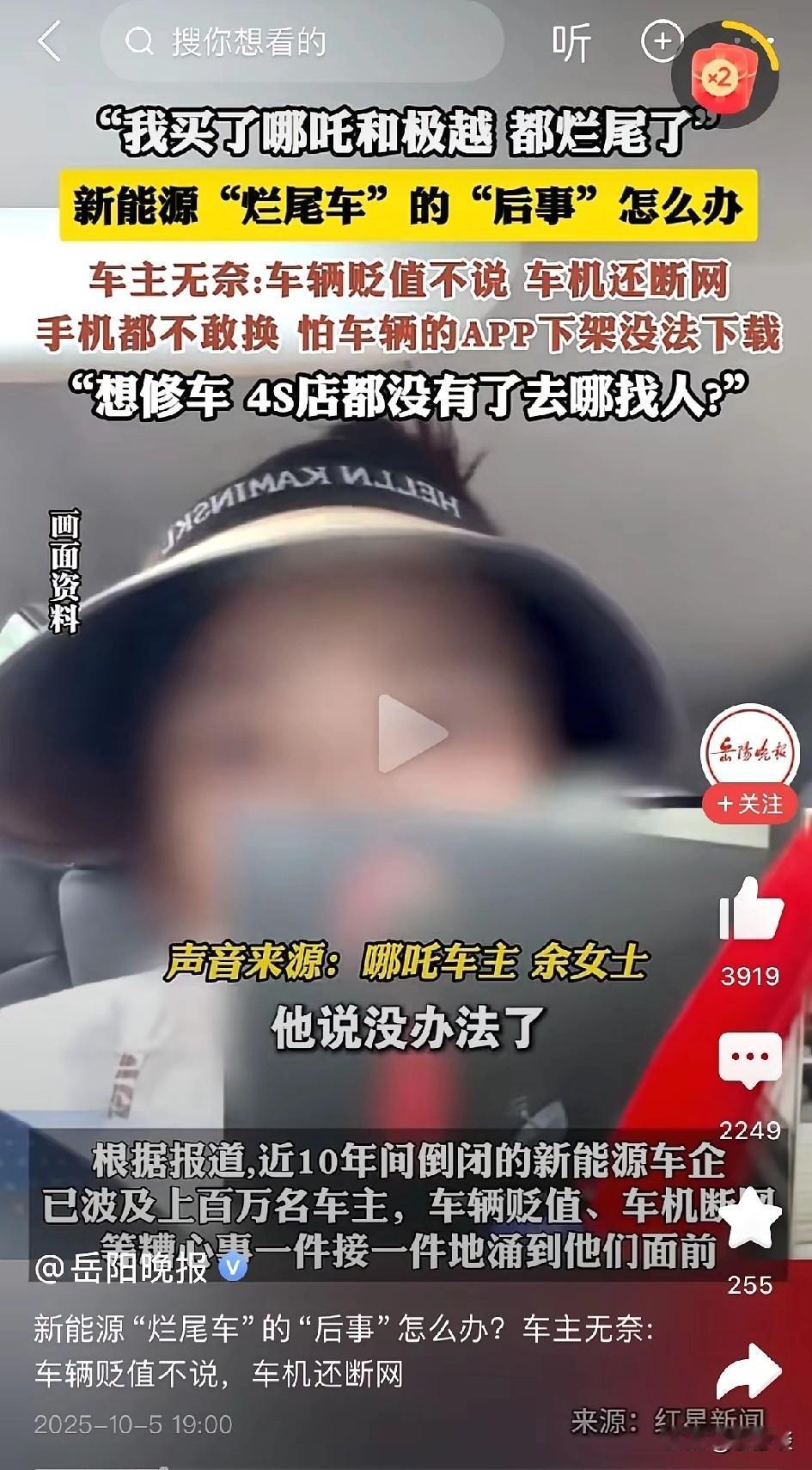新能源车如雨后春笋,在国内发展的非常的快,但是很多车企当初有多高兴,现在就有多悲惨,特别是很多购买了不知名的新能源车企购买者更是可悲。因为这些新能源车企由于资金断裂,销量不佳等原因,导致这些车企关门大吉,受害者包括众多的购买者,可能这些车企的 APP 都下载不了,助理也找不到四儿子店了,他们的手机跟汽车的关联可能也被取消了。如果他们更换手机,可能连APP都下载不了,汽车就变成僵尸车了,想动也动不了了! 对于普通消费者而言,如果接二连三买到那些倒闭或者濒临倒闭的新能源车,那么真的是叫天天不灵,叫地地不应。买新能源车一定要购买大品牌大公司生产的车子,或者与大企业有合作的车子,这样的售后就会有所保障,否则几十万可能就打水漂了,而且现在新能源车要价又非常的高,这可都是血汗钱!