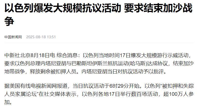 人质回来了,这回内塔尼亚胡可以“光荣”退休了! 现在内塔尼亚胡战时总统的保护伞眼看就要没了,等着他的不是功成身退的安稳日子,而是一连串甩不掉的麻烦和躲不开的追责。 以色列国内的调查早就摆上了台面。以色列总检察长办公室已经明确,要查他在巴以冲突初期的决策失误,特别是人质危机爆发后那72小时黄金救援期里,政府是不是反应太慢、情报判断是不是出了错。 议会司法委员会也打算在这个月开听证会,反对党更是没闲着,已经联合提交了弹劾提案,说他在冲突里滥用职权、损害国家利益。 要知道,之前内塔尼亚胡就因为搞司法改革闹得满城风雨,那场争议持续了30周,全国150多个地方都有抗议,民众吵着说改革要毁了民主制度。 现在没了战时总统这个“保护伞”,政治对手肯定不会放过清算他的机会,他经营多年的政治根基早就晃得厉害。 国际上的追责更是紧追不放。国际刑事法院9月发声明说,已经对加沙冲突展开全面调查,重点看有没有违反国际人道法的行为,内塔尼亚胡作为当时的最高决策者,肯定会被盯上。 联合国人权理事会前不久的报告也指出,冲突期间以色列在加沙的一些军事行动可能涉嫌战争罪,呼吁国际社会采取行动。 更糟的是,盖洛普民调显示,他在美国的不支持率已经升到52%,创下1997年以来的最高纪录。这些指控和数据都不是凭空来的,每一项都可能让他陷入长期的法律麻烦。 国内民众的火气就更压不住了,8月的时候特拉维夫、海法这些主要城市,多次爆发大规模抗议,数万人举着“问责内塔尼亚胡”的标语上街,要求他为冲突造成的大量人员伤亡和人质危机负责。 民调显示,他的支持率已经跌到任期内的最低水平,曾经说一不二的政治强人,现在成了大家批评的对象。以前靠战时状态还能勉强凝聚点人心,现在这点凝聚力也没了。 说到底,人质释放不过是内塔尼亚胡政治生涯的“回光返照”。一旦战时总统的身份卸任,国内的调查、政治对手的清算、国际社会的追责就会一起涌过来。 内忧外患缠在一起,他的日子只会越来越难熬。等待他的,注定是一场收拾不了的政治风暴。