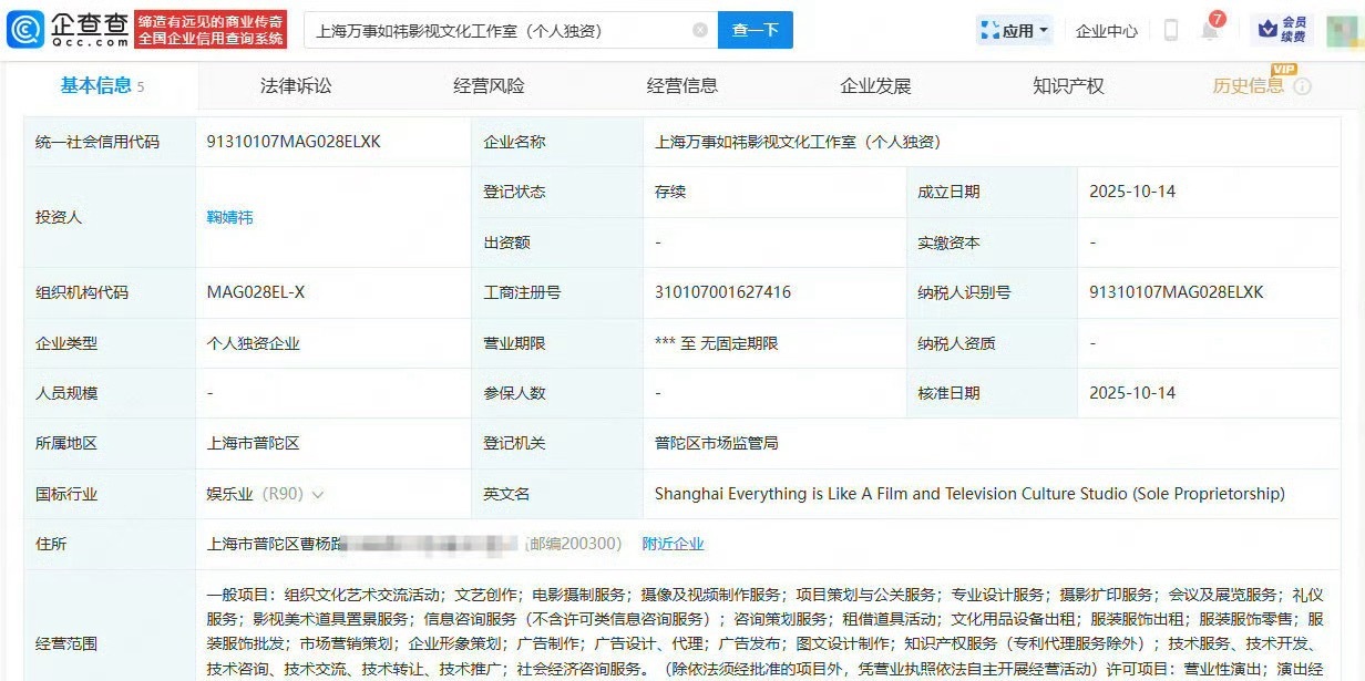 鞠婧祎成立新工作室鞠婧祎成立个人工作室,起的名字也好有寓意,分别是橘事顺利和万事