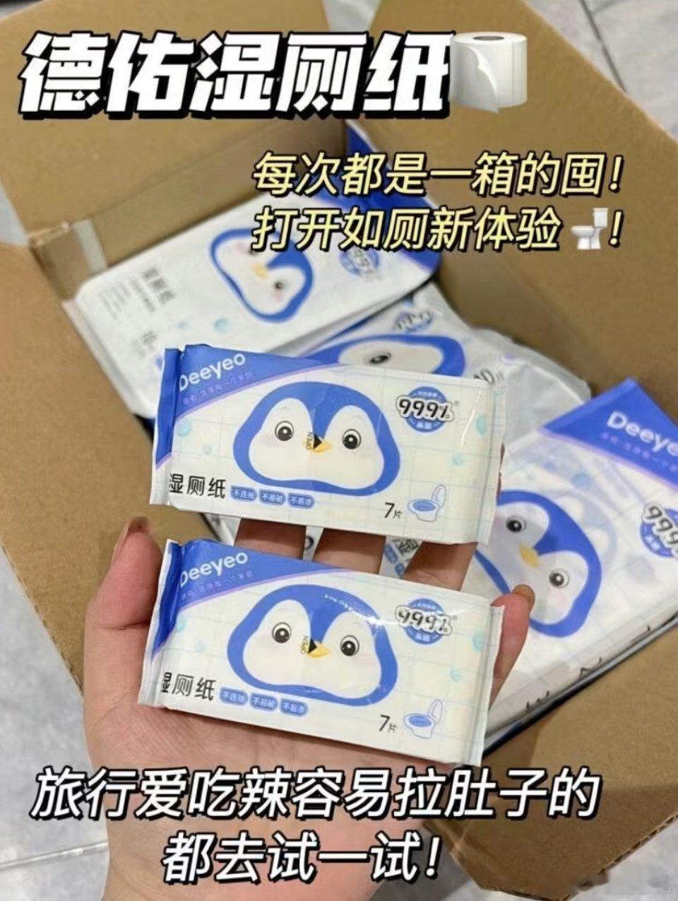 德佑真的把我圈得死死的!始于颜值:湿厕纸上的小企鹅萌翻了,蓝白配色治愈又高级,独立包装随身带超方便~