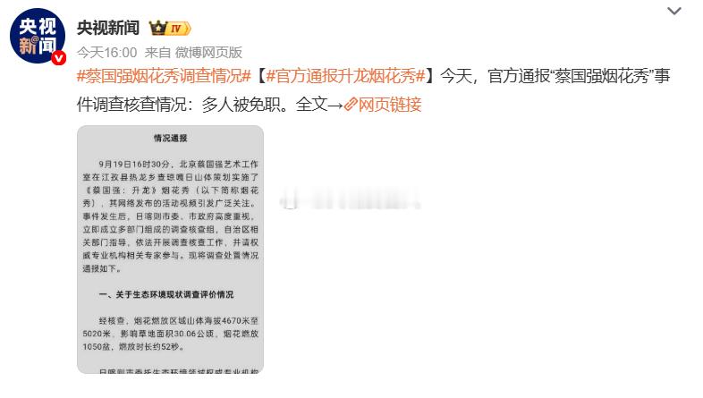 蔡国强烟花秀调查情况 不给他上秤,他不知道事情有千斤重[怒][怒]