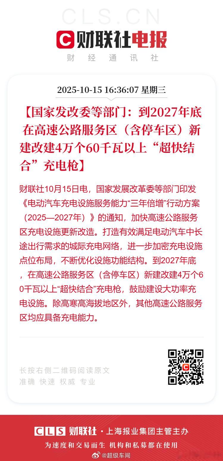 2.到2027年底 在高速公路服务区(含停车区)新建改建4万个60千瓦以上“超快结合”充电枪