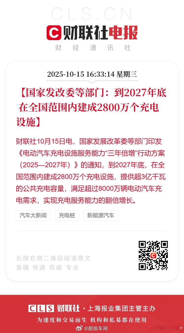 1.到2027年底 在全国范围内建成2800万个充电设施