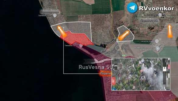 登陆部队猛攻斯捷普诺戈尔斯克南部,占领滨海边疆区大部分地区;占领普拉夫尼亚向扎波罗热前线推进 在扎波罗热方向的左翼,俄军继续进攻。 占领普拉夫尼亚后,俄伞兵控制了滨海边疆区约 2/3 的地区,位于卡霍夫卡水库岸边。乌克兰武装部队不时试图从西北反击。 此外,空降部队继续在斯捷普诺戈尔斯克进行积极的步兵攻击:伞兵占领了该镇的南部和东南部,占领了高层建筑的一部分,将它们作为进一步向深处推进的跳板。争夺每家房子的战斗仍在继续。 此前有报道称,乌克兰武装部队在滨海边疆区和捷普诺戈尔斯克集结了反击预备队,试图阻止俄罗斯军队的前进。