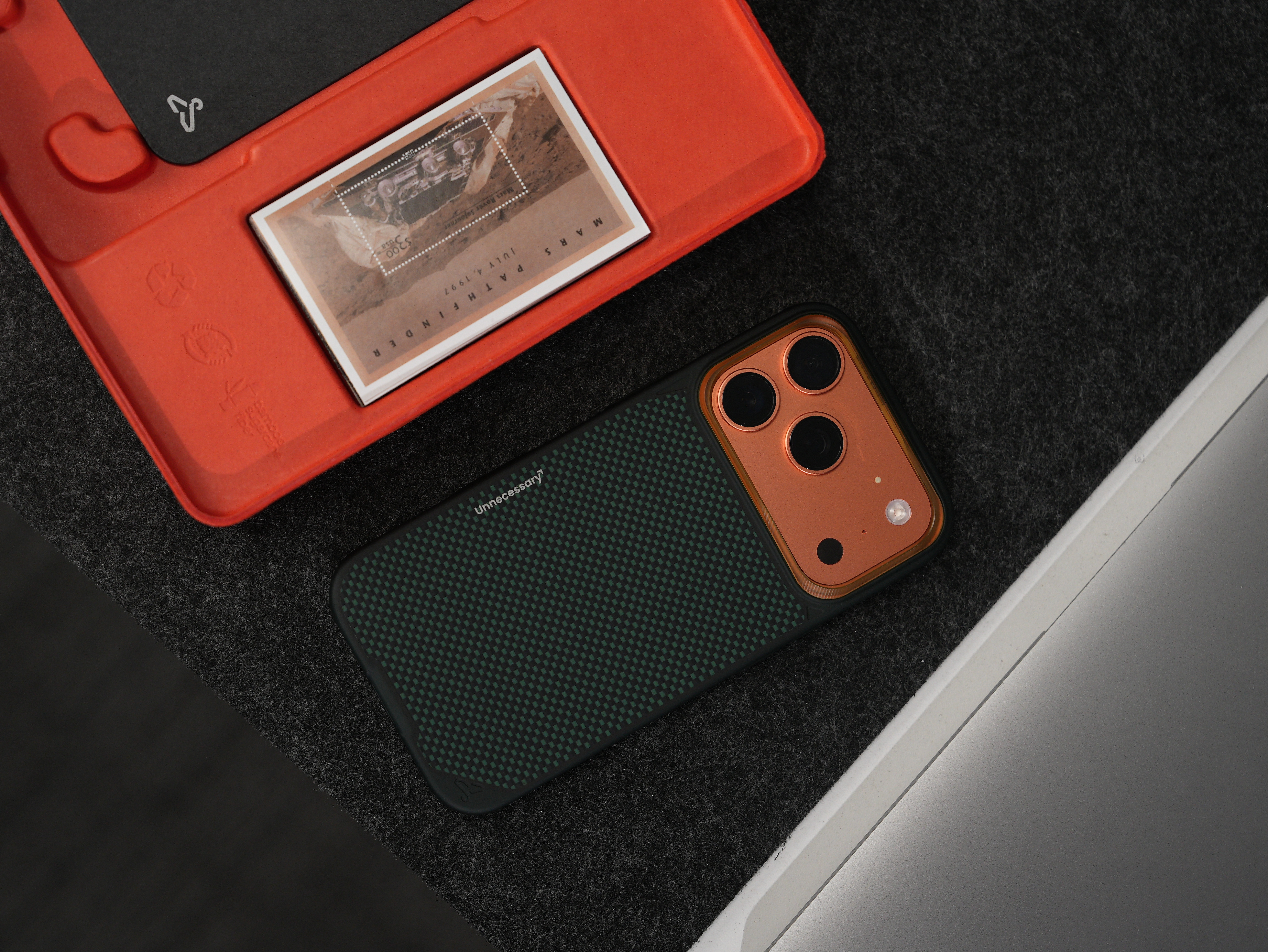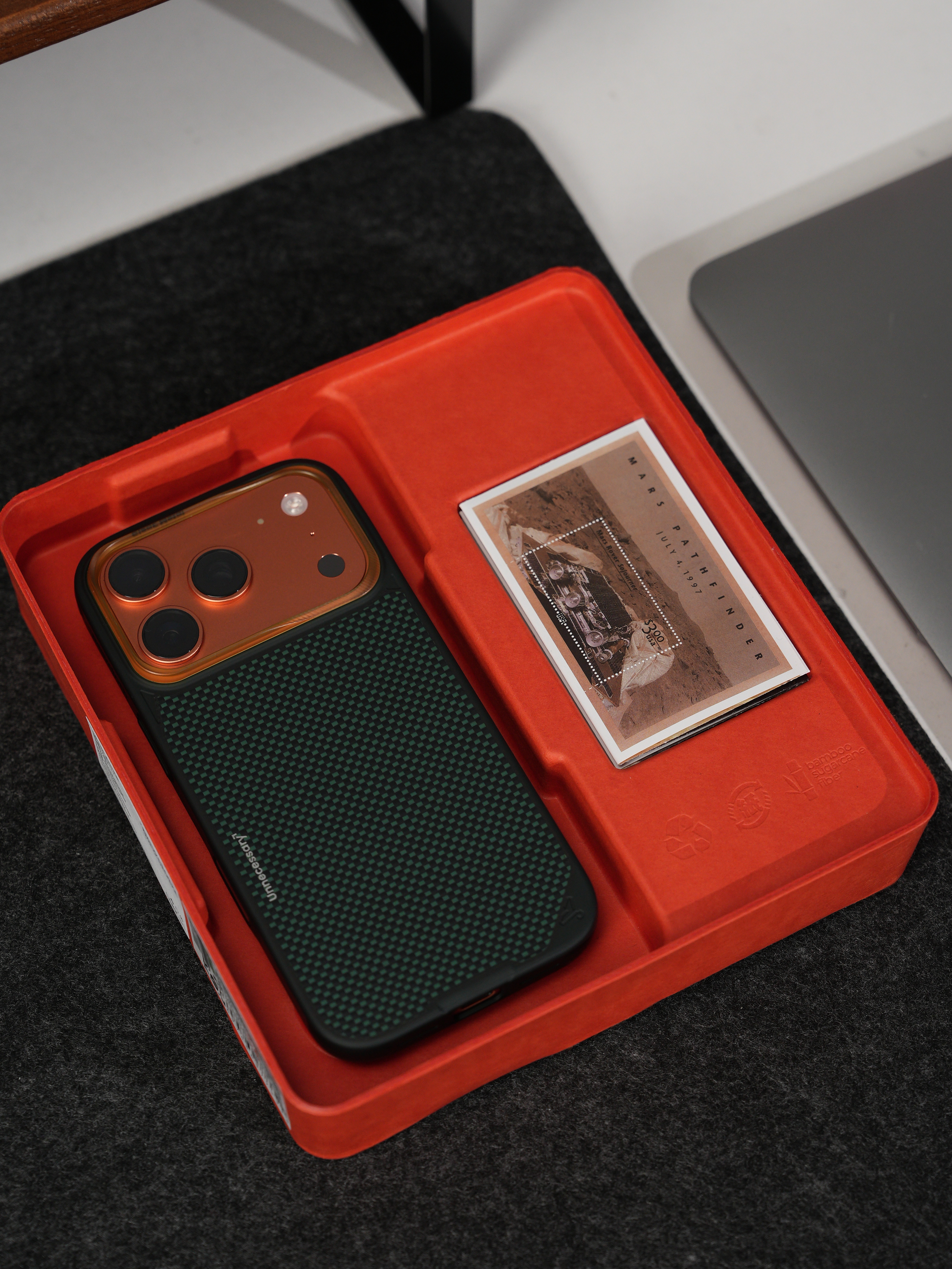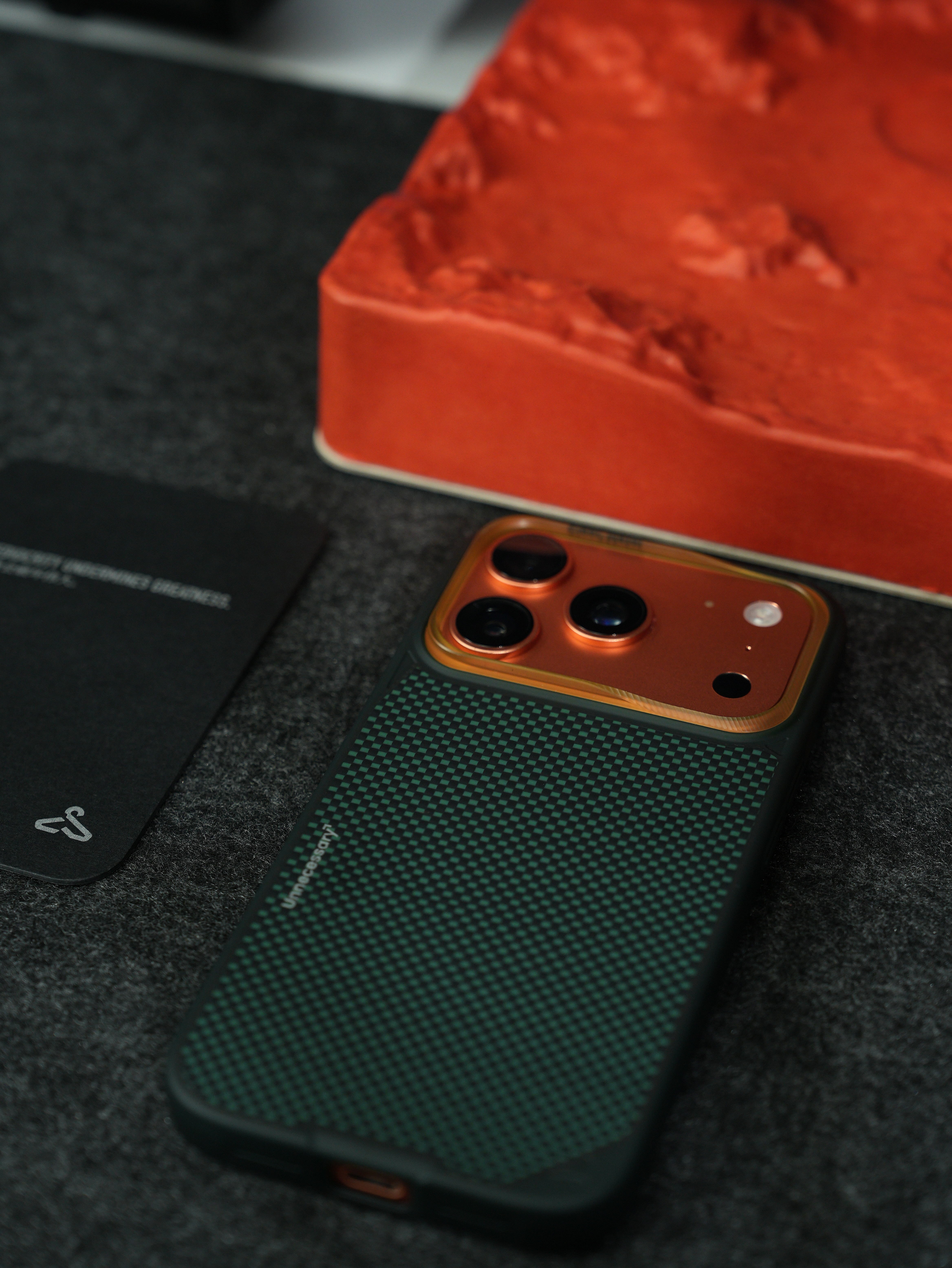 我用的这款iPhone17 Pro 版本才 21 克,拿在手上几乎感觉不到额外负担。而且它用的 Ultem 晶体松脂,全包设计,不怕手滑坠落磕碰脆弱的铝合金边框(没钛强度高)。