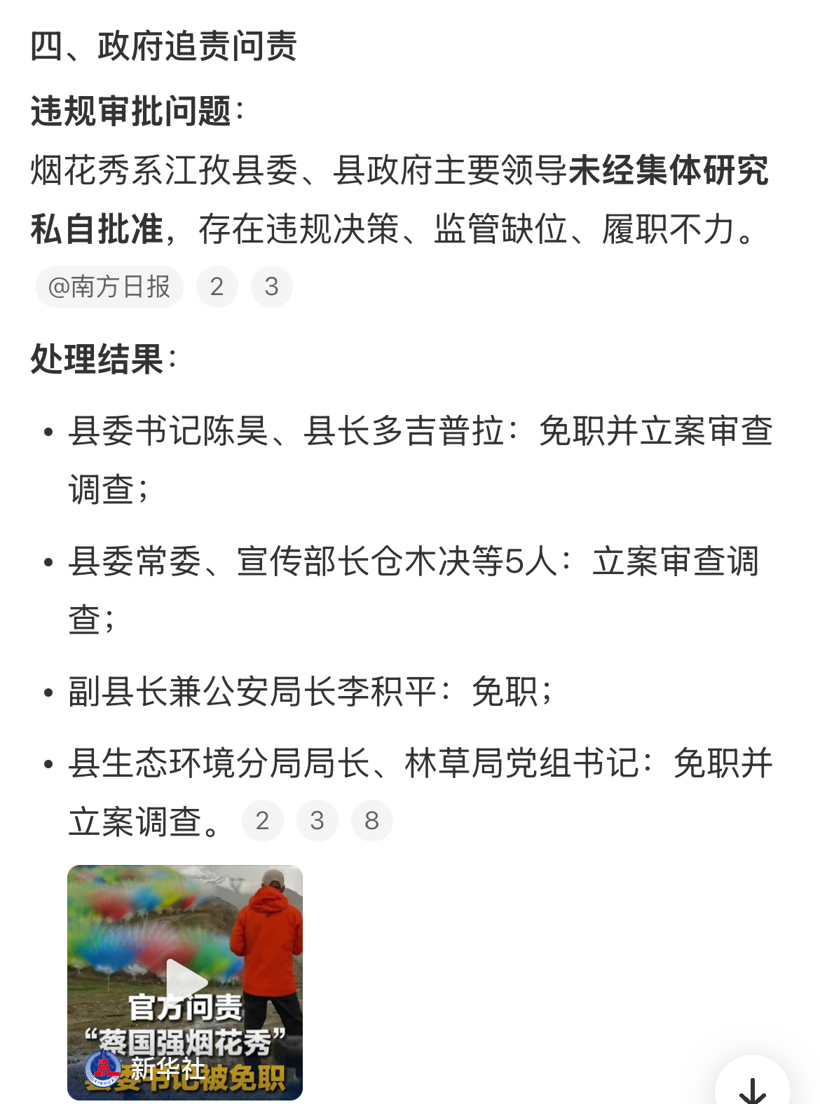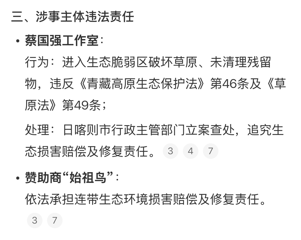 蔡国强的“升龙秀”调查处理结果出来了,江孜县委书记被免职,始祖鸟承担相应生态损害